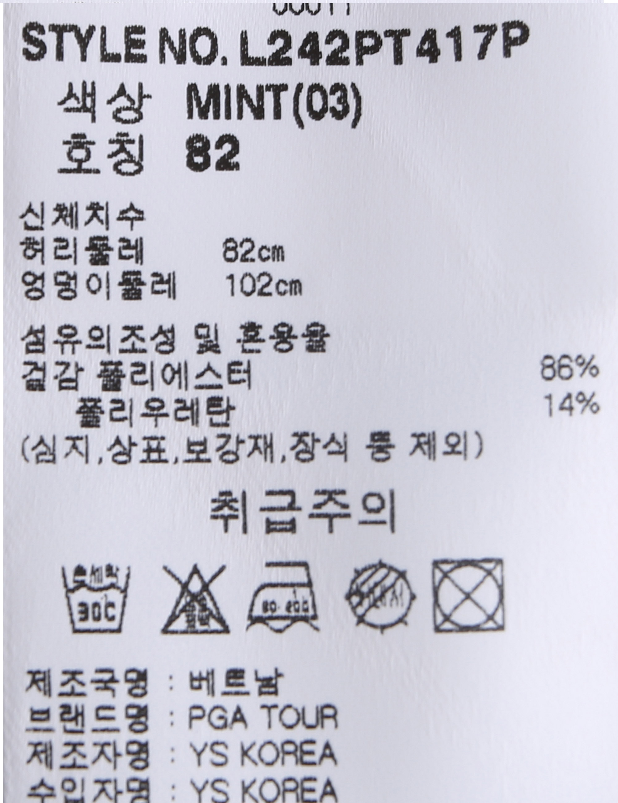제품소재 [겉감]폴리에스터86% 폴리우레탄14%