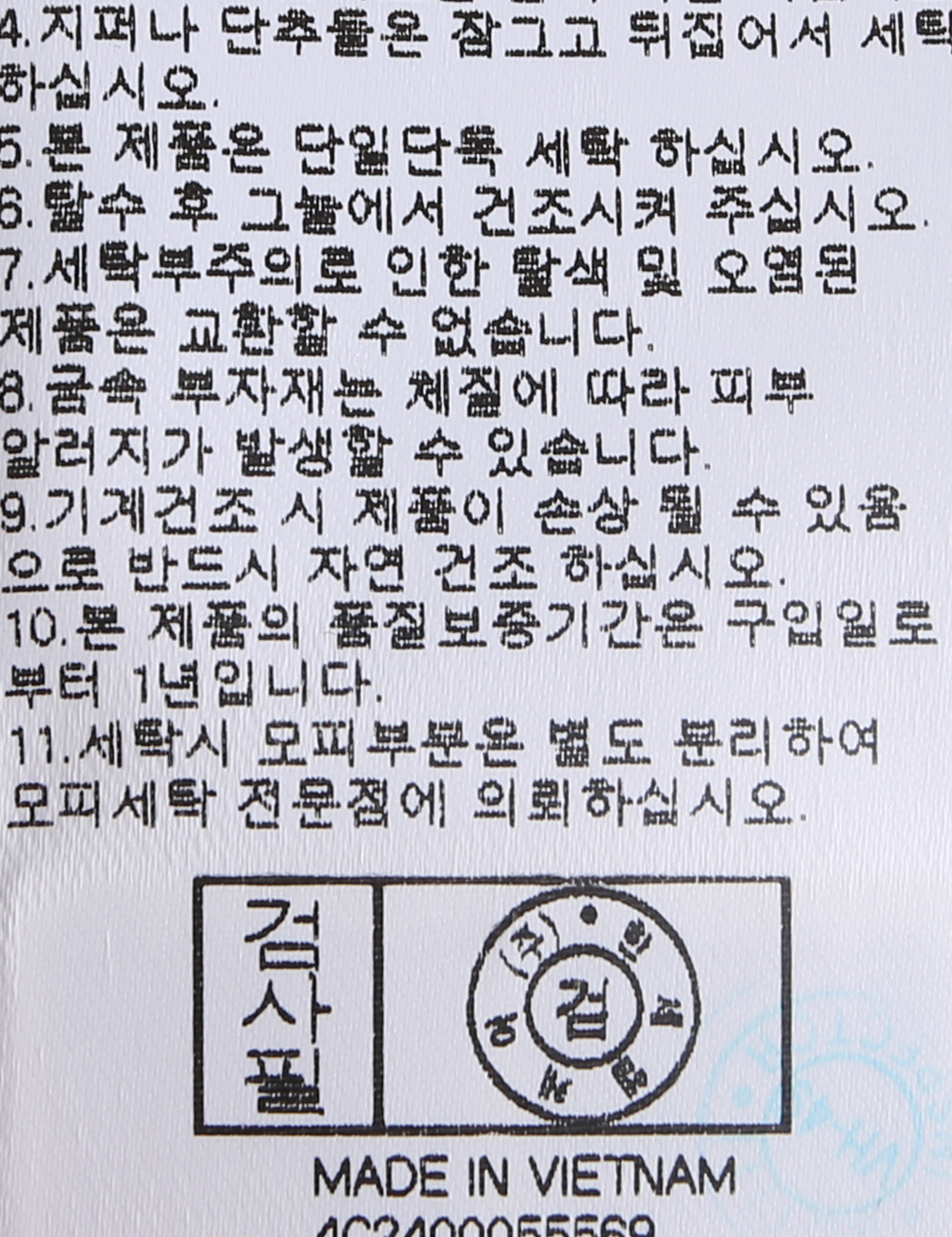 세탁방법 및 취급시 주의사항 본 제품은 손세탁 하십시오.(케어라벨참고)