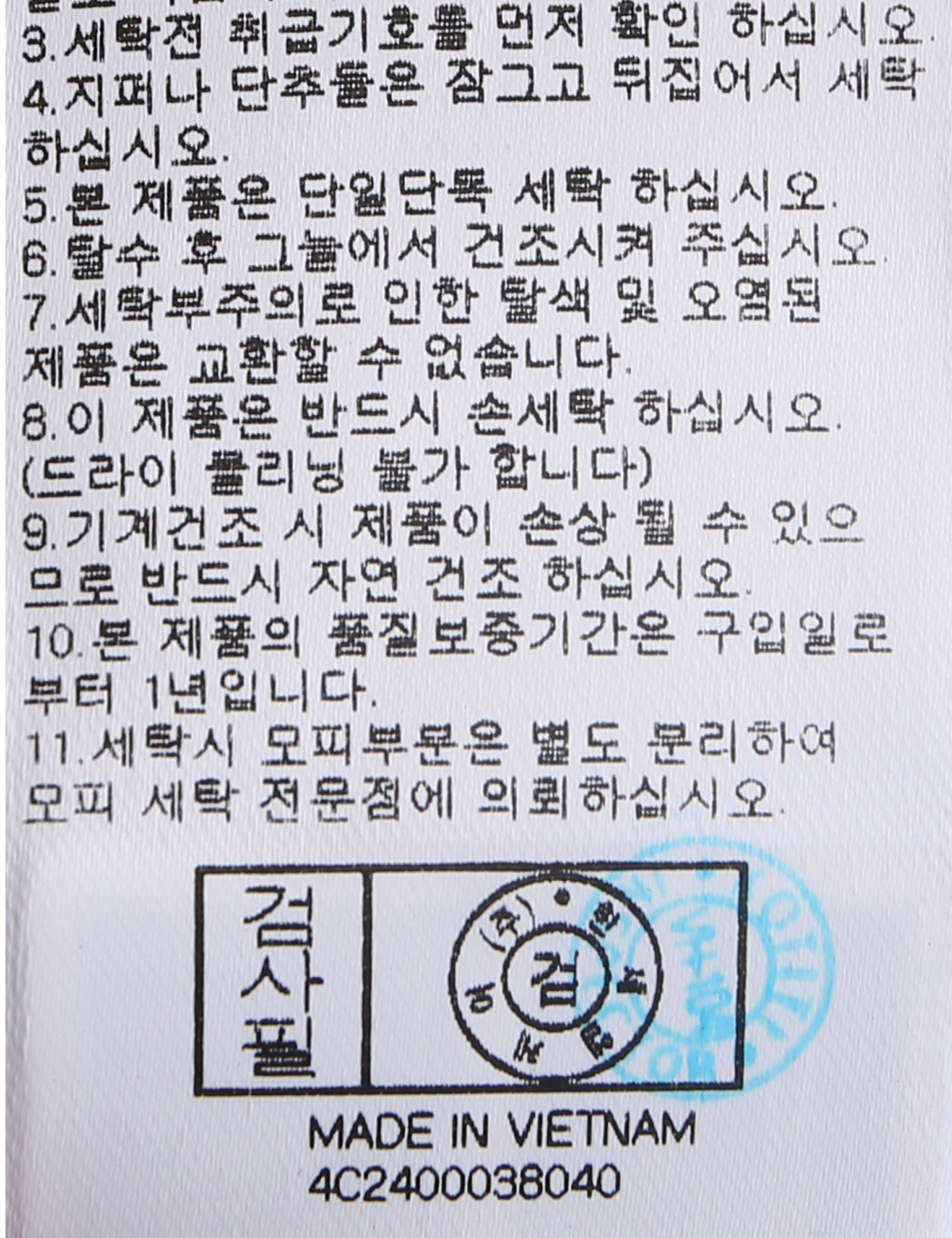 세탁방법 및 취급시 주의사항 본 제품은 손세탁 하십시오.(케어라벨참고)