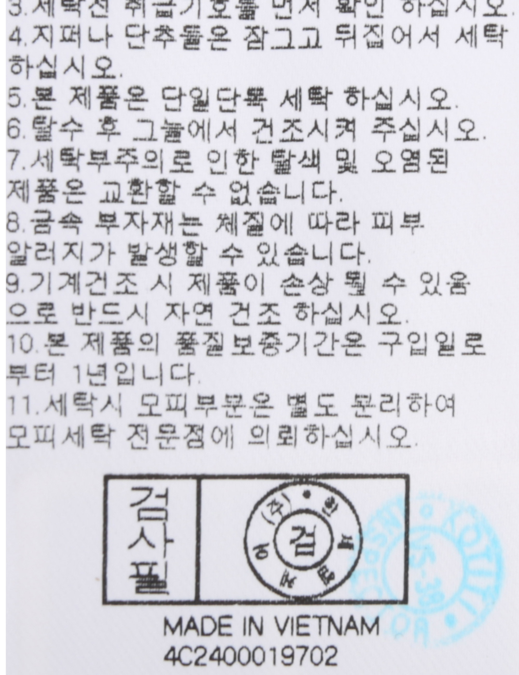 | 세탁방법 및 취급시 주의사항 | 본 제품은 손세탁 하십시오.(케어라벨참고) |