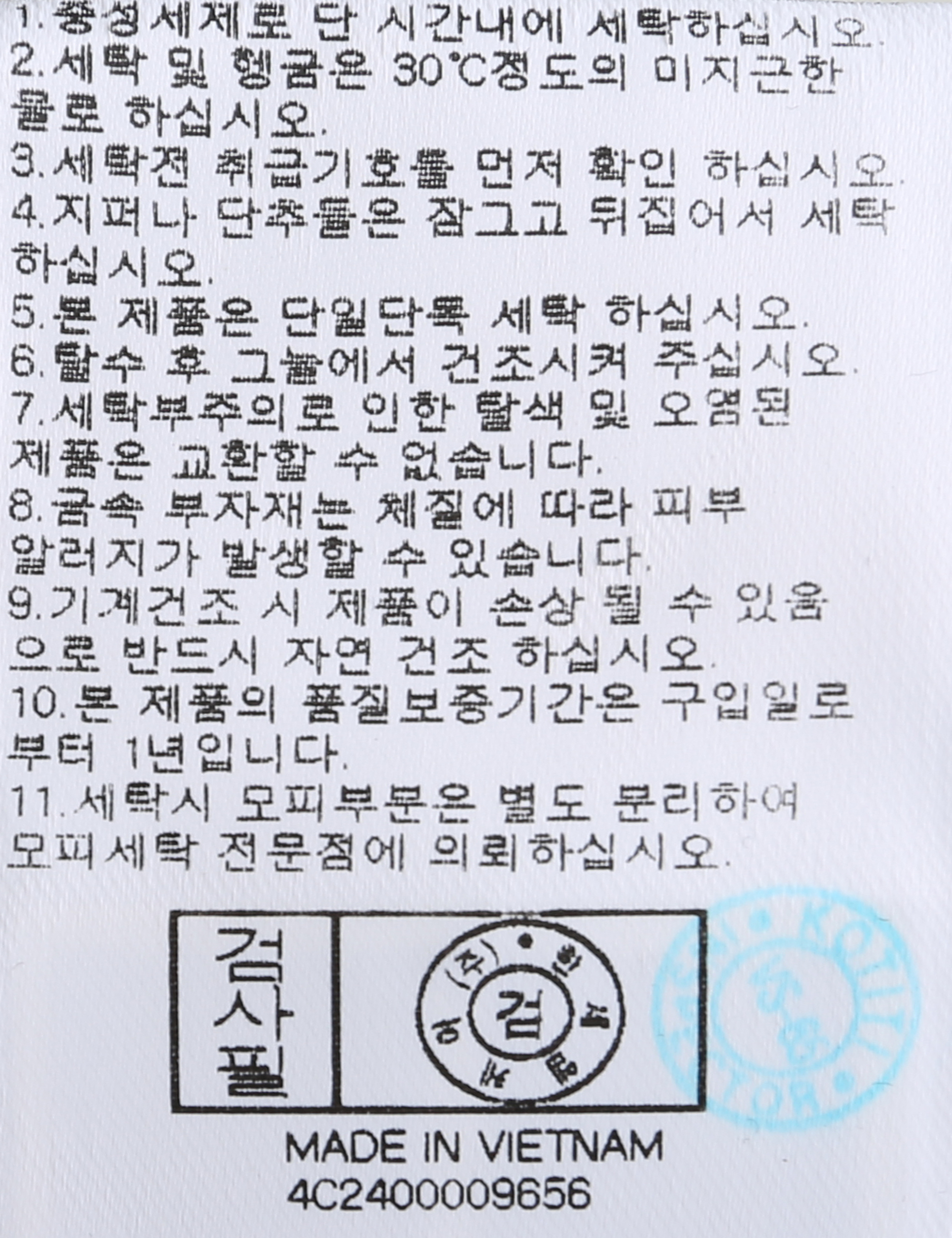 | 세탁방법 및 취급시 주의사항 | 본 제품은 손세탁 하십시오.(케어라벨참고) |