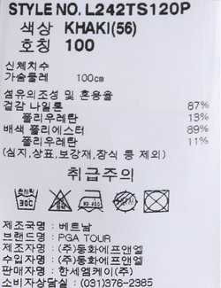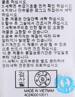 | 세탁방법 및 취급시 주의사항 | 본 제품은 손세탁 하십시오.(케어라벨참고) |