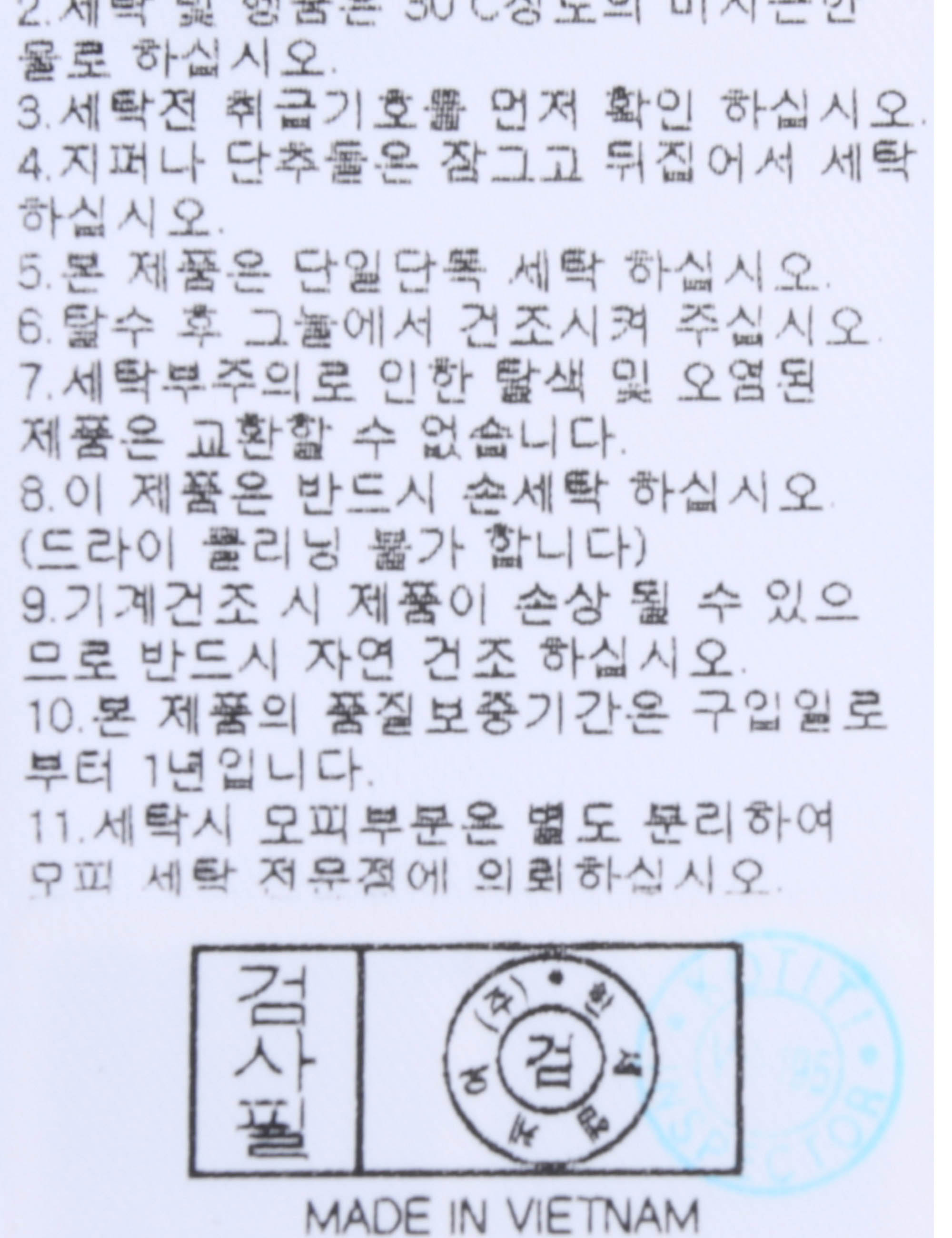 | 세탁방법 및 취급시 주의사항 | 본 제품은 손세탁 하십시오.(케어라벨참고) |
