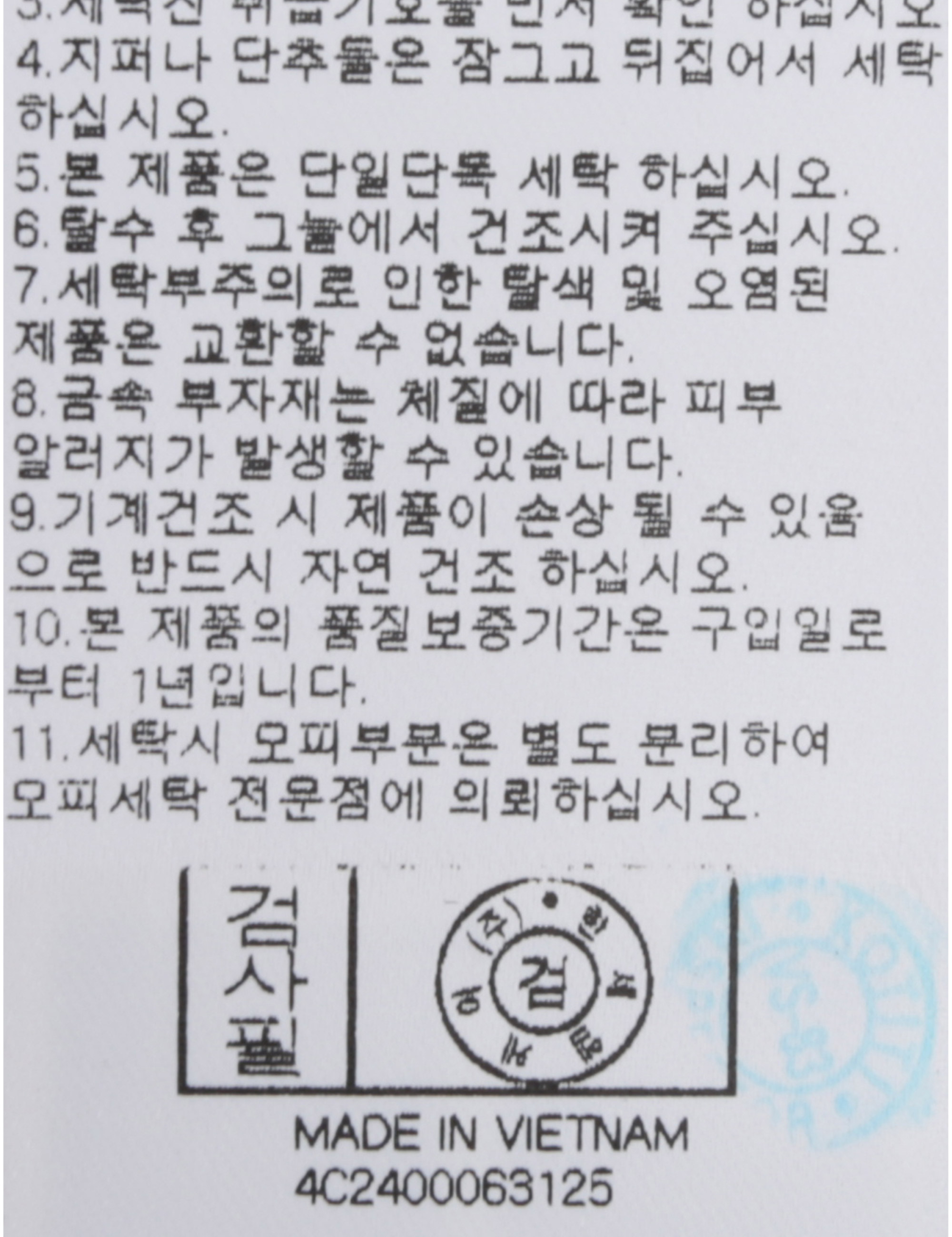 | 세탁방법 및 취급시 주의사항 | 본 제품은 손세탁 하십시오.(케어라벨참고) |