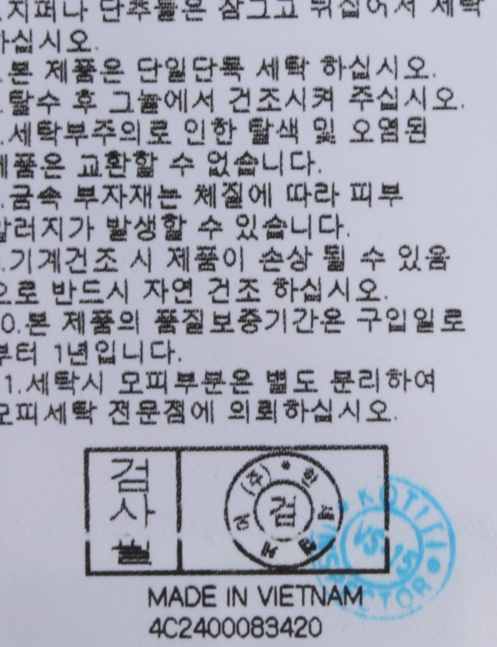 세탁방법 및 취급시 주의사항 본 제품은 손세탁 하십시오.(케어라벨참고)