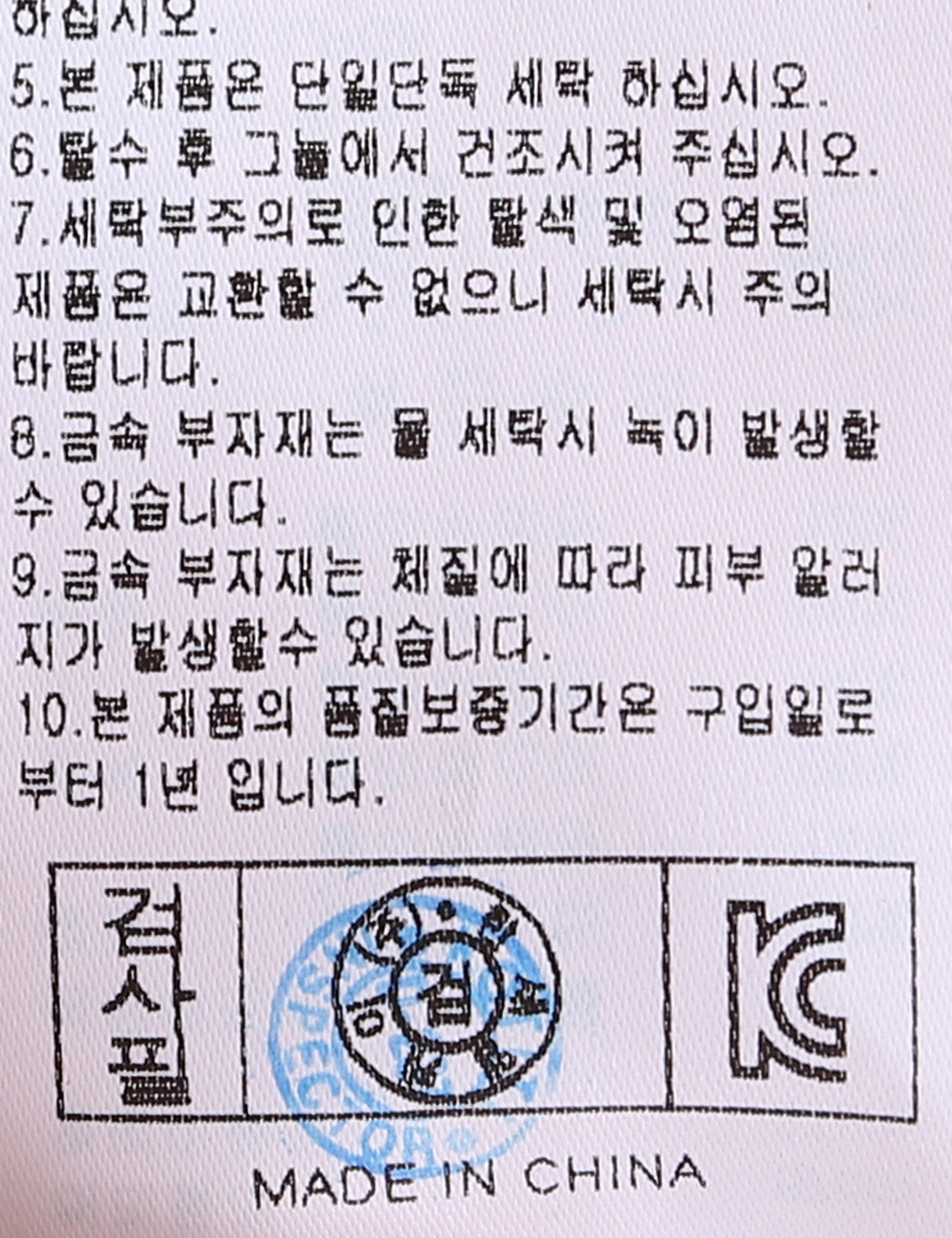 | 세탁방법 및 취급시 주의사항 | 본 제품은 손세탁 하십시오.(케어라벨참고) |