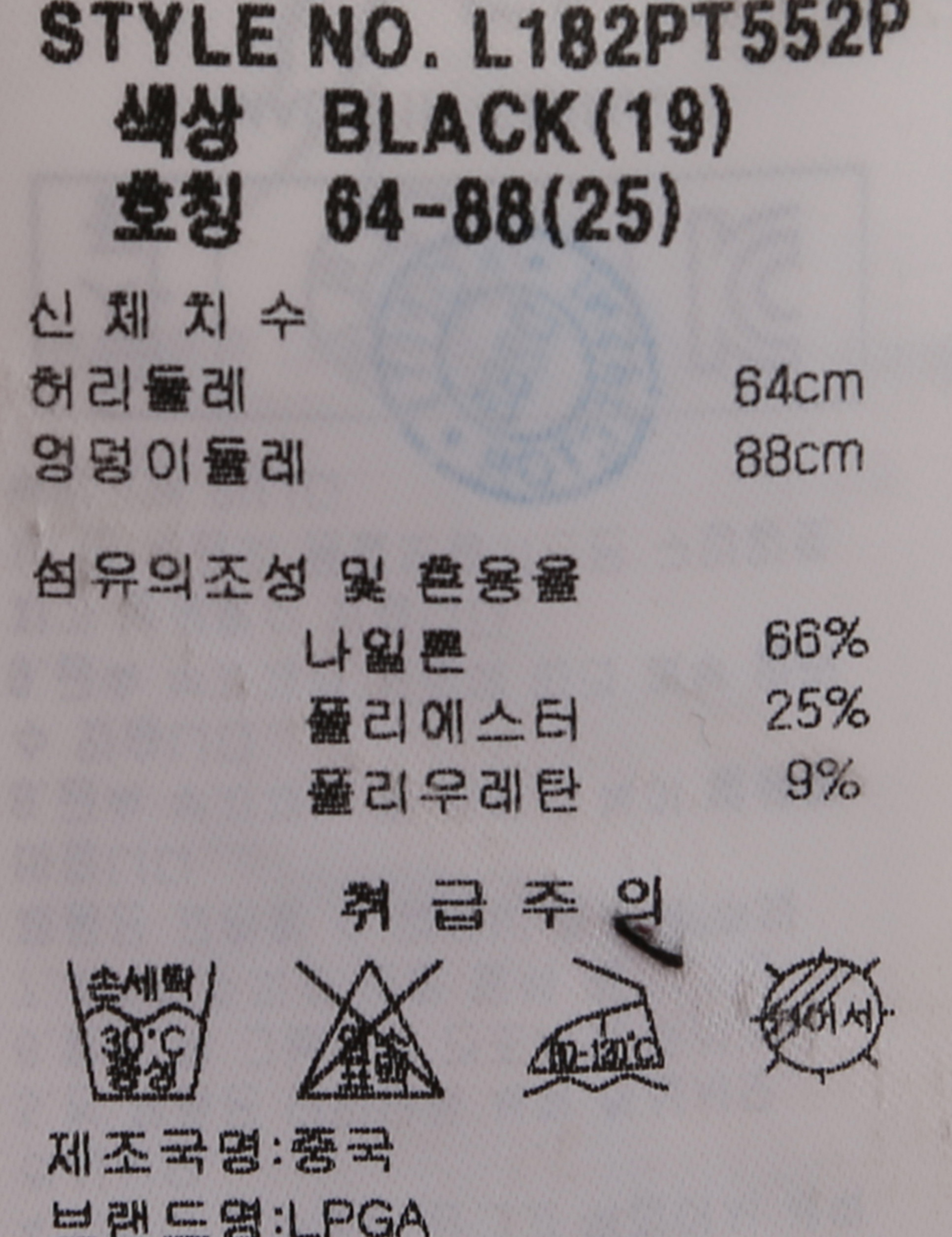 제품소재 겉감:나일론66% 폴리에스터25% 폴리우레탄9%