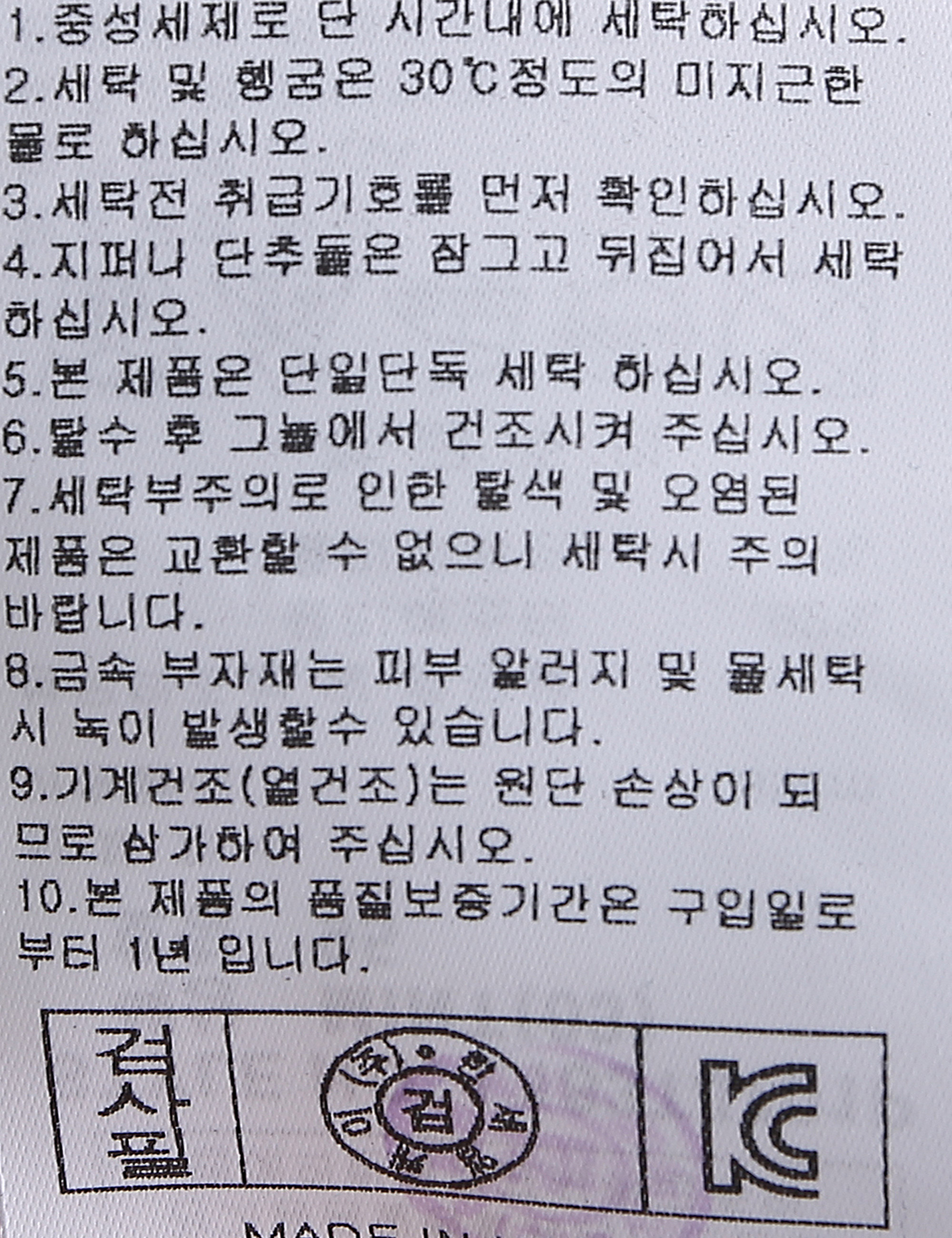 세탁방법 및 취급시 주의사항 본 제품은 손세탁 하십시오.(케어라벨참고)
