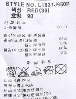 브랜드 홈 바로가기| 제품소재 | [겉감](표면)나일론85% 폴리우레탄15% [겉감](이면)폴리에스터88% 폴리우레탄12% |