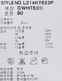 제품소재 [겉감]아크릴53% 면26% 나일론12% 모9% [배색]나일론100% [안감]나일론100%
