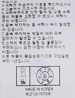 세탁방법 및 취급시 주의사항 본 제품은 반드시 드라이크리닝 하십시오.(세탁라벨참고)