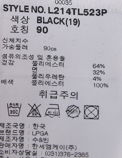 제품소재 [겉감]폴리에스터64% 면32% 폴리우레탄4% [배색]폴리에스터100%