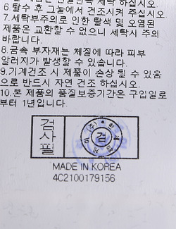세탁방법 및 취급시 주의사항 본 제품은 손세탁 하십시오.(케어라벨참고)