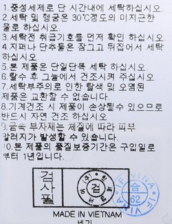 세탁방법 및 취급시 주의사항 본 제품은 손세탁 하십시오.(케어라벨참고)
