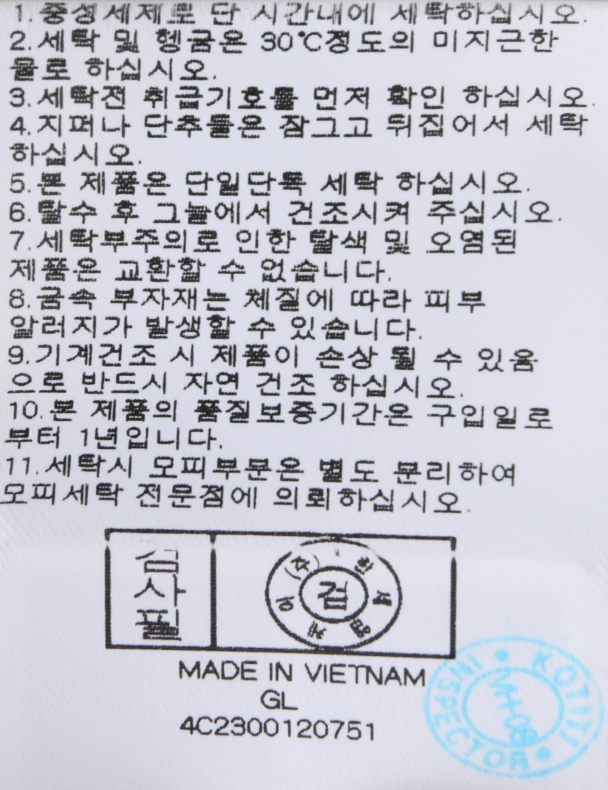세탁방법 및 취급시 주의사항 본 제품은 손세탁 하십시오.(케어라벨참고)