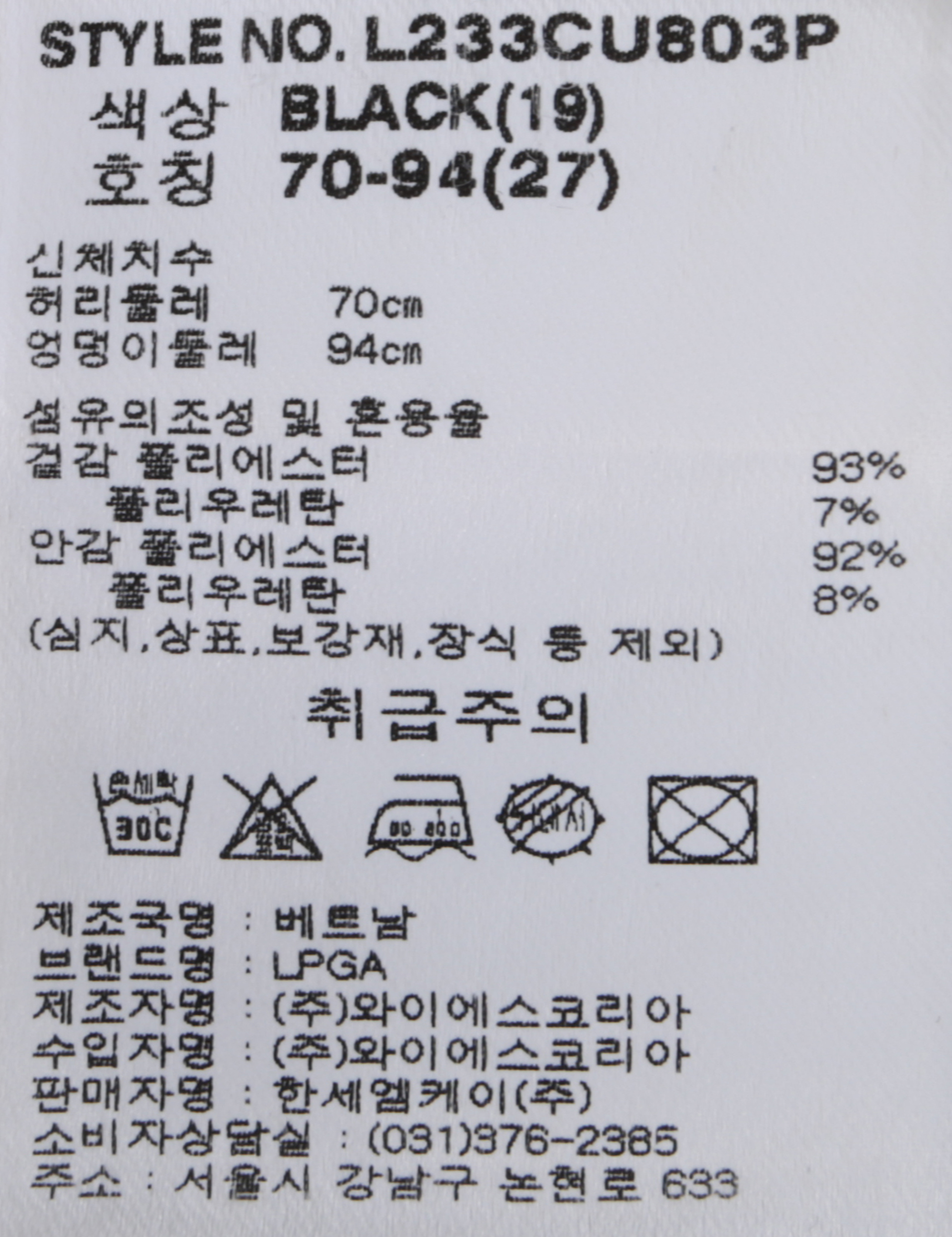| 상품코드 | L233CU803P |