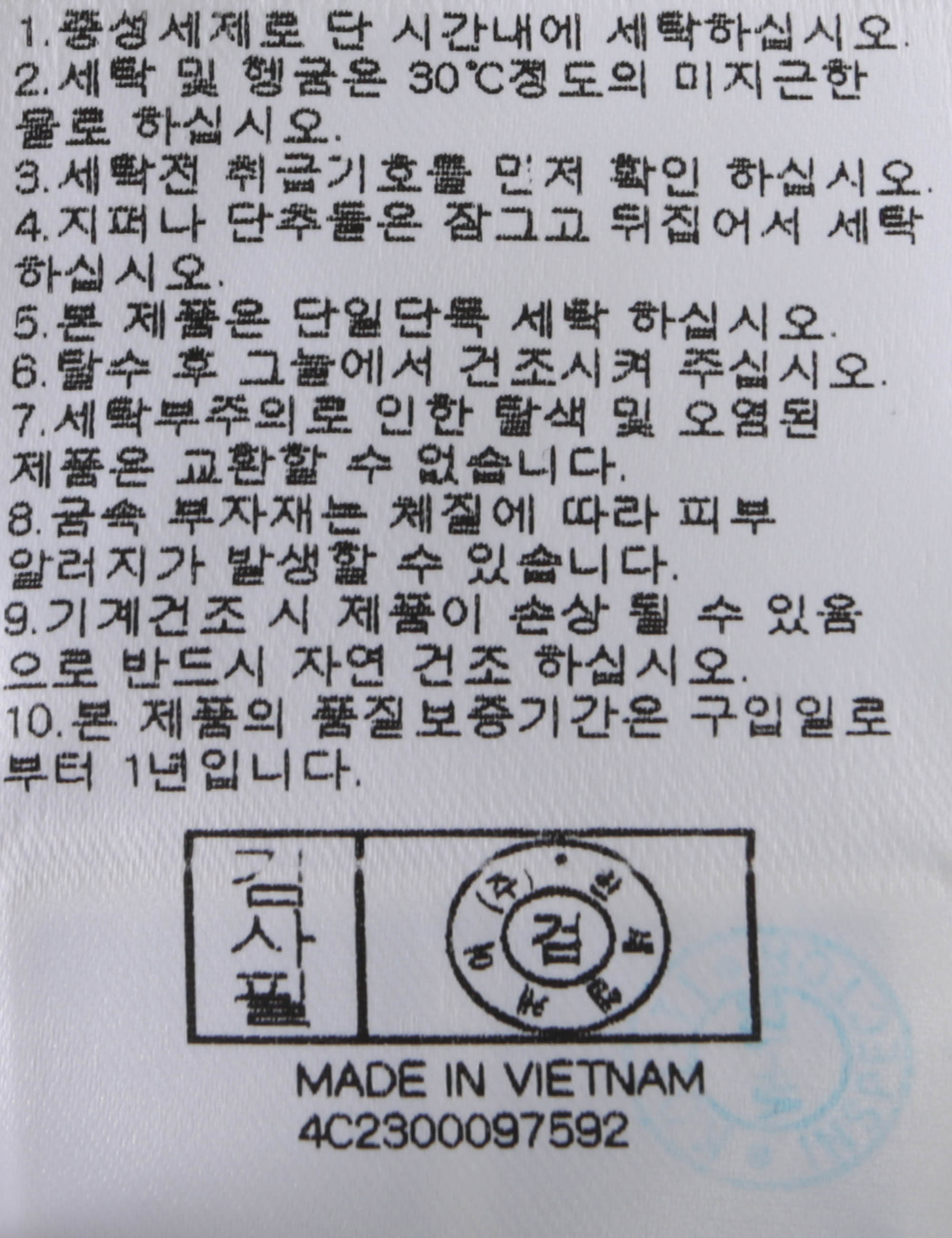 | 세탁방법 및 취급시 주의사항 | 본 제품은 손세탁 하십시오.(케어라벨참고) |