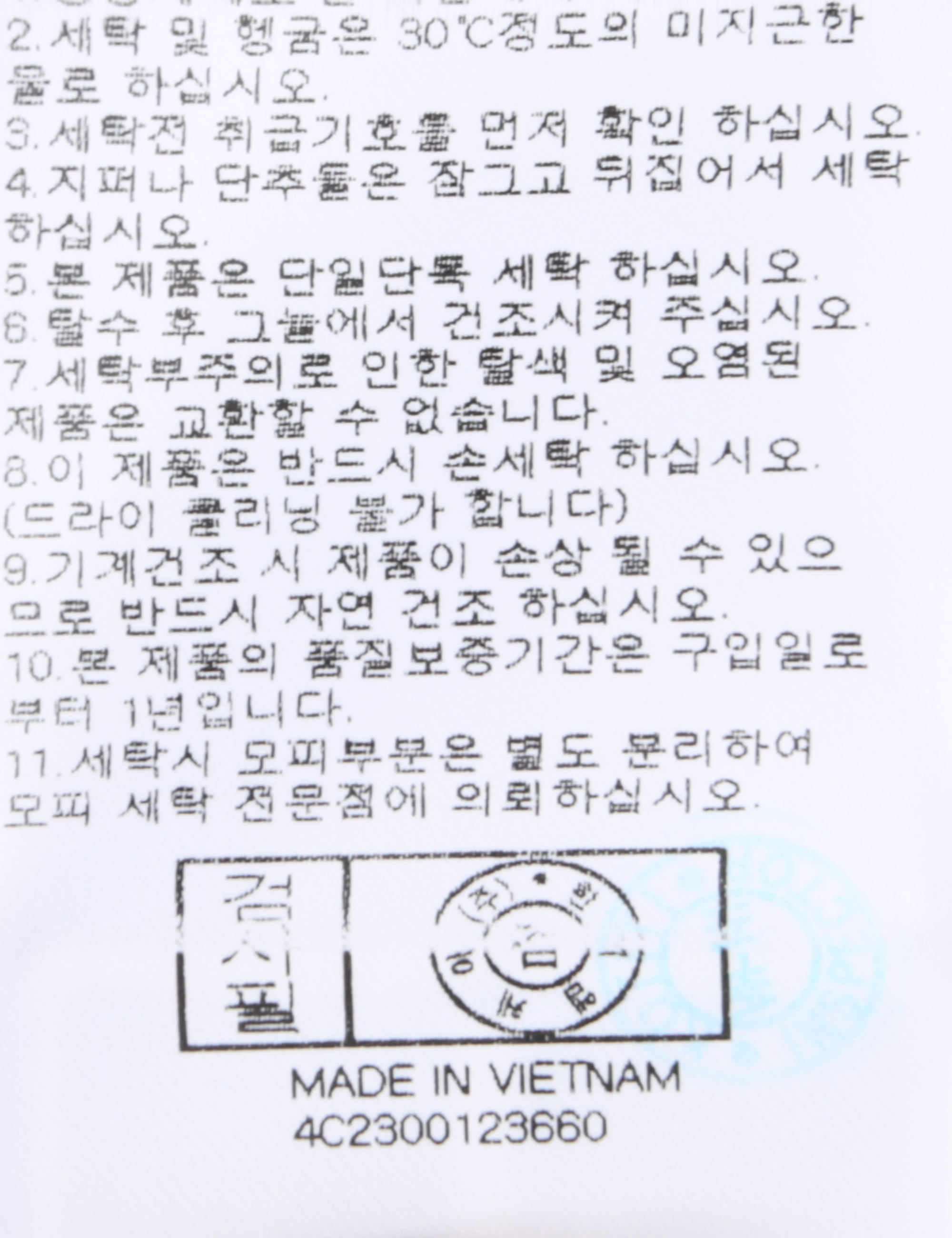 세탁방법 및 취급시 주의사항 본 제품은 손세탁 하십시오.(케어라벨참고)