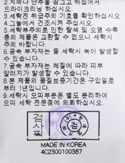 | 세탁방법 및 취급시 주의사항 | 본 제품은 반드시 드라이크리닝 하십시오.(세탁라벨참고) |