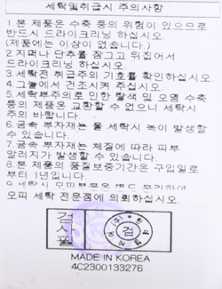 | 세탁방법 및 취급시 주의사항 | 본 제품은 반드시 드라이크리닝 하십시오.(세탁라벨참고) |