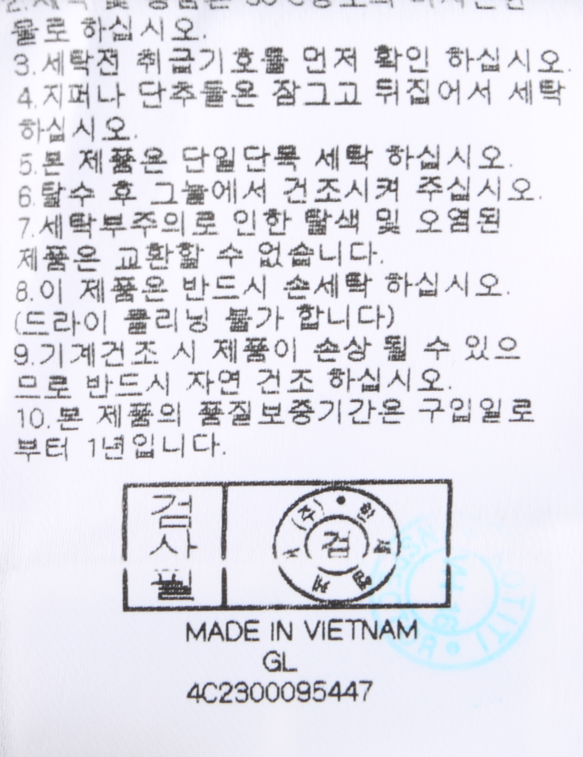 세탁방법 및 취급시 주의사항 본 제품은 손세탁 하십시오.(케어라벨참고)