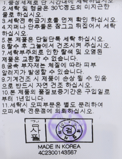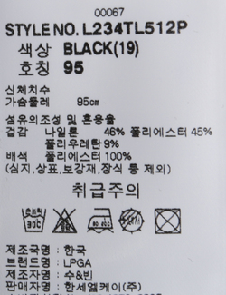 | 세탁방법 및 취급시 주의사항 | 본 제품은 반드시 드라이크리닝 하십시오.(세탁라벨참고) |