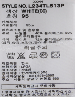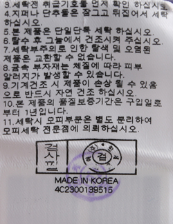 | 세탁방법 및 취급시 주의사항 | 본 제품은 손세탁 하십시오.(케어라벨참고) |