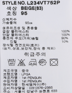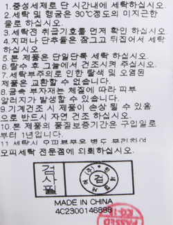 | 세탁방법 및 취급시 주의사항 | 본 제품은 손세탁 하십시오.(케어라벨참고) |