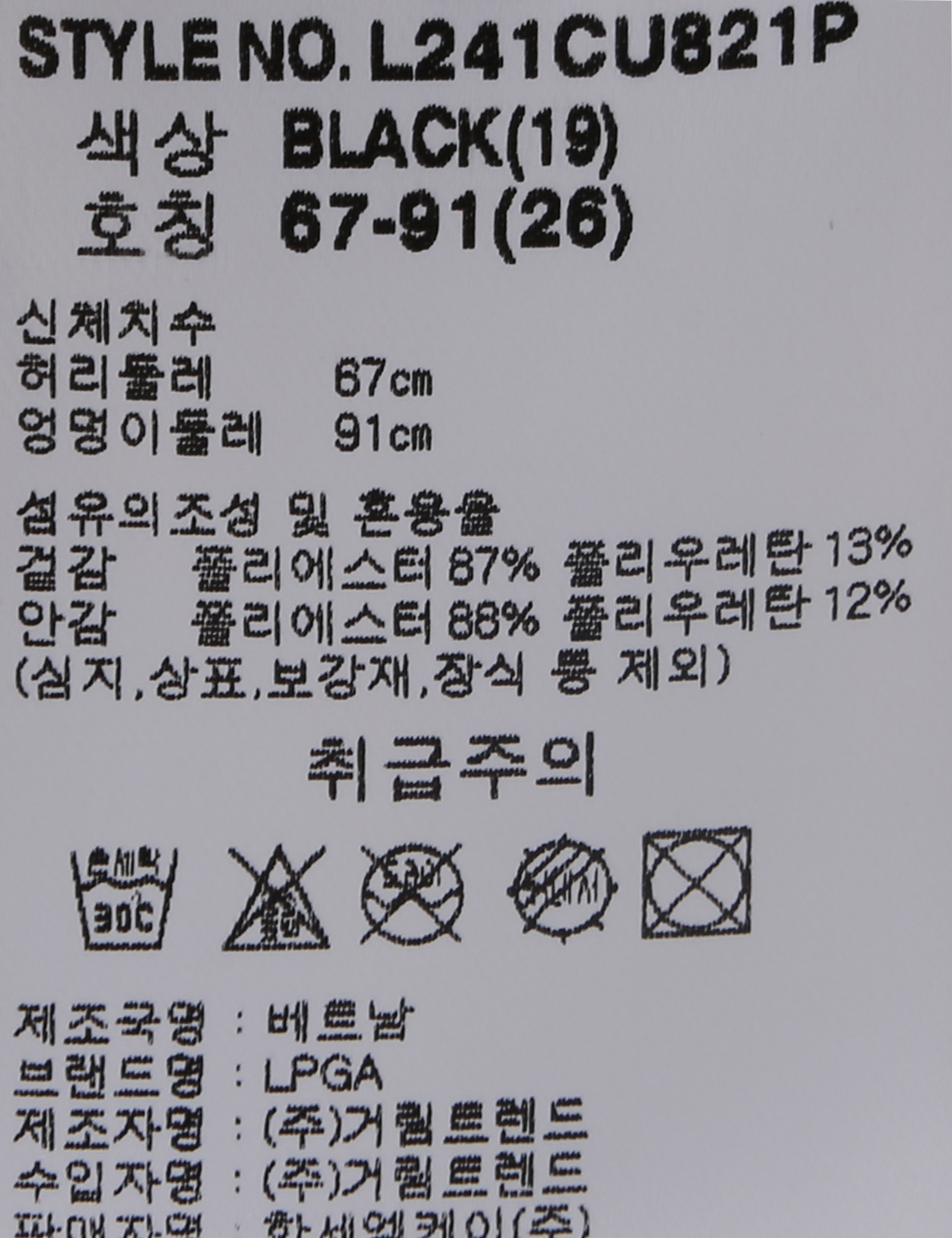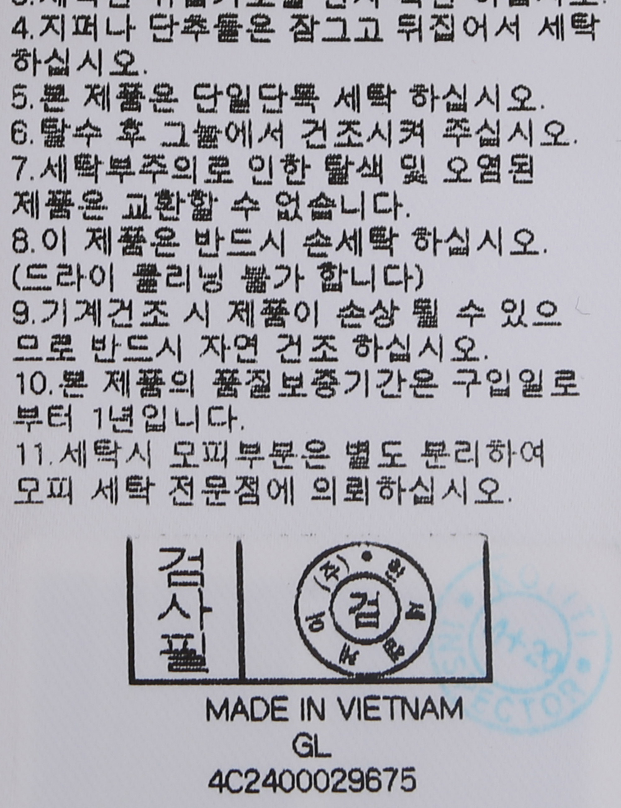 | 세탁방법 및 취급시 주의사항 | 본 제품은 손세탁 하십시오.(케어라벨참고) |