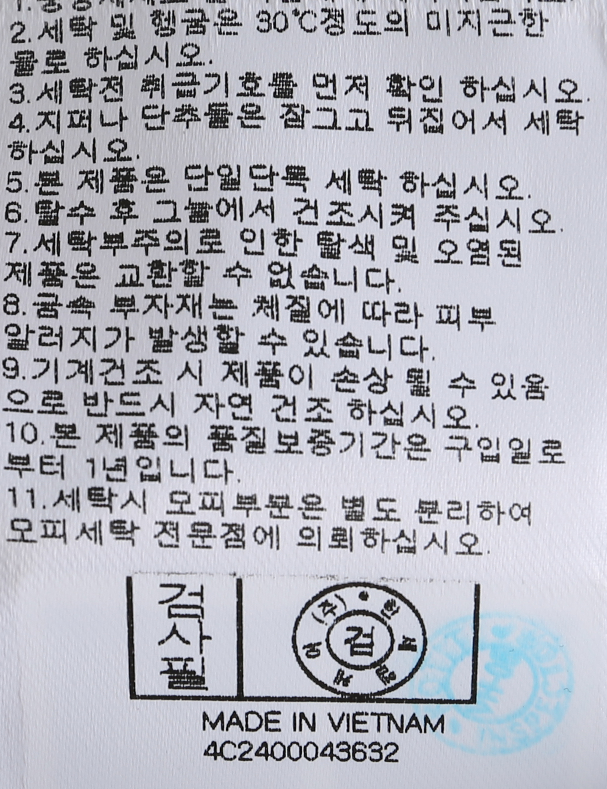 세탁방법 및 취급시 주의사항 본 제품은 손세탁 하십시오.(케어라벨참고)