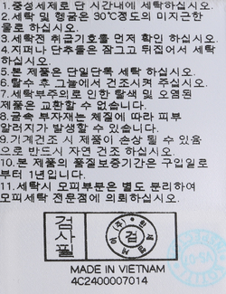 | 세탁방법 및 취급시 주의사항 | 본 제품은 손세탁 하십시오.(케어라벨참고) |