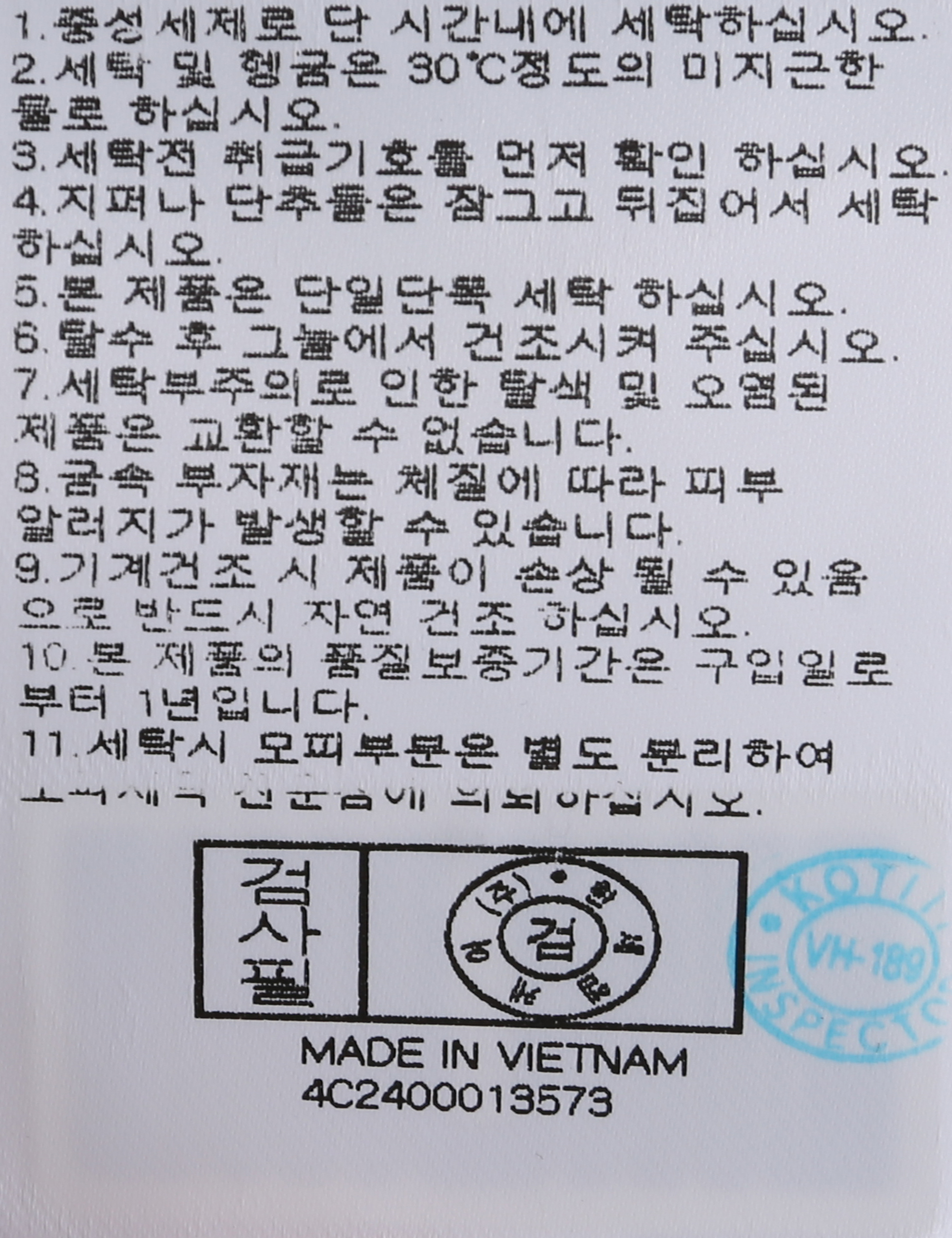 | 세탁방법 및 취급시 주의사항 | 본 제품은 손세탁 하십시오.(케어라벨참고) |