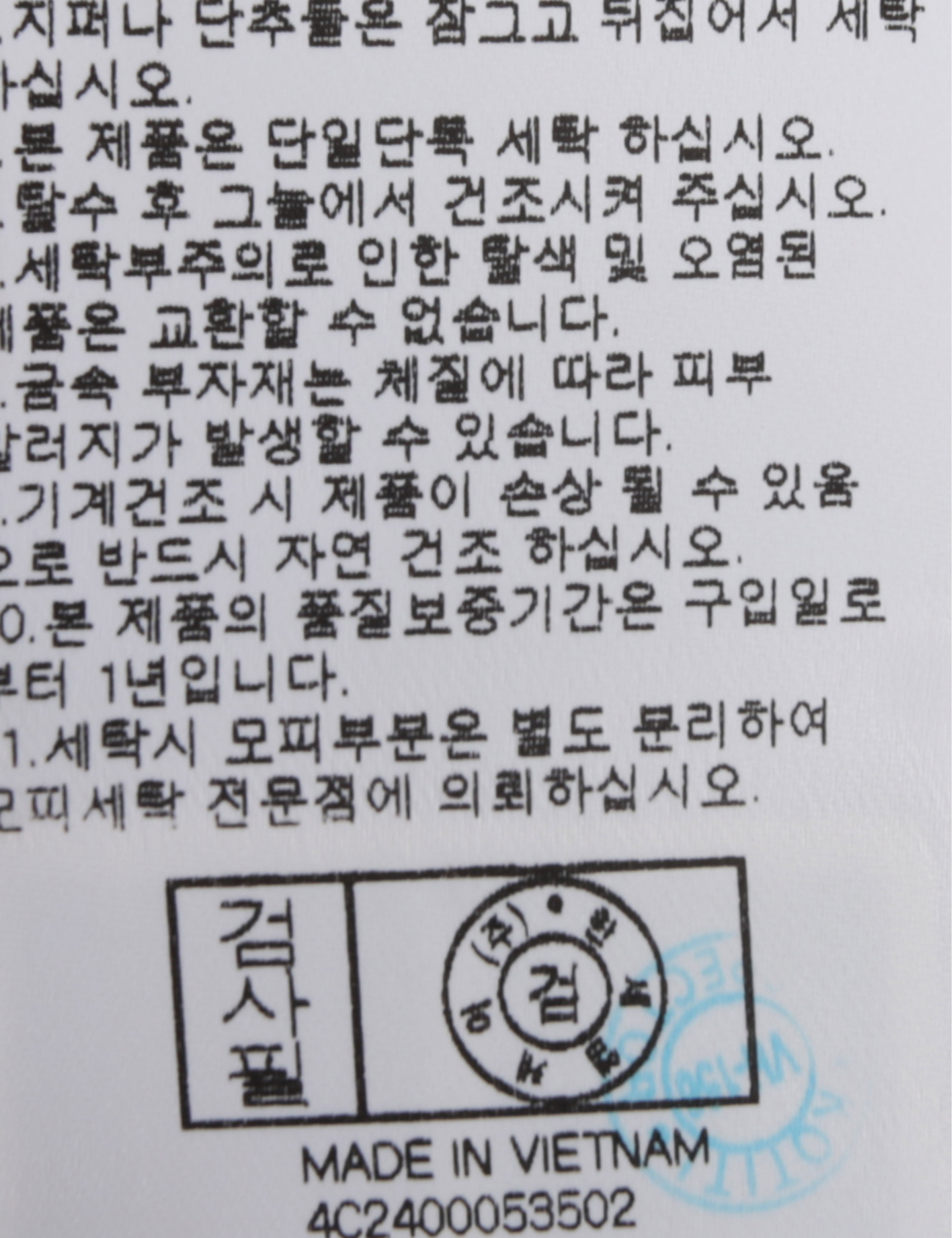 | 세탁방법 및 취급시 주의사항 | 본 제품은 손세탁 하십시오.(케어라벨참고) |