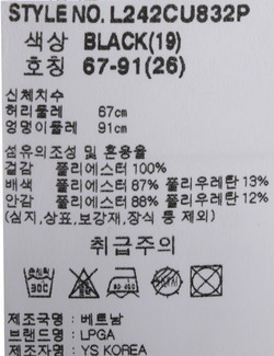 제품소재 [겉감]폴리에스터100% [배색]폴리에스터87% 폴리우레탄13% [안감]폴리에스터88%폴리우레탄12%