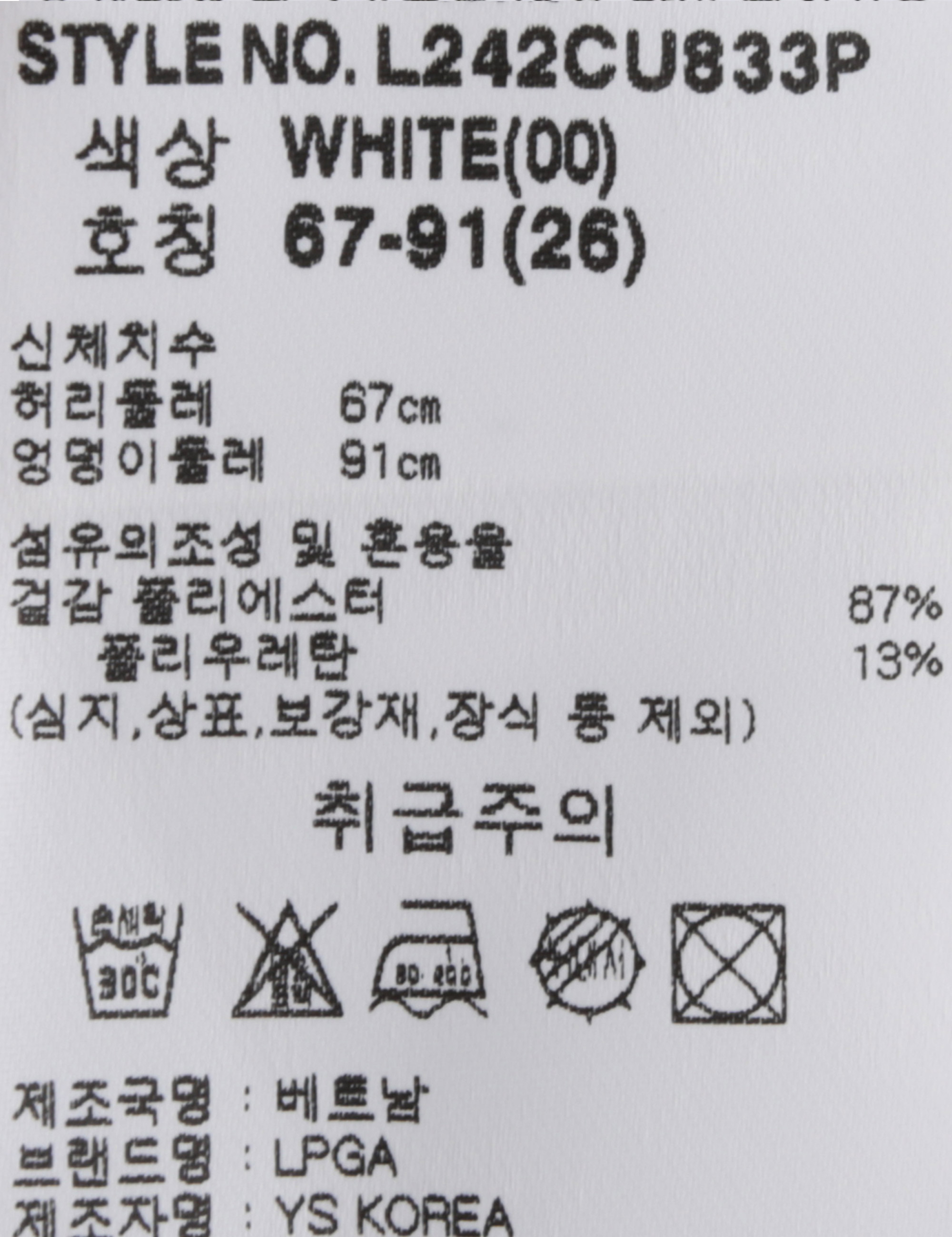 브랜드 홈 바로가기| 제품소재 | [겉감]폴리에스터87% 폴리우레탄13% |