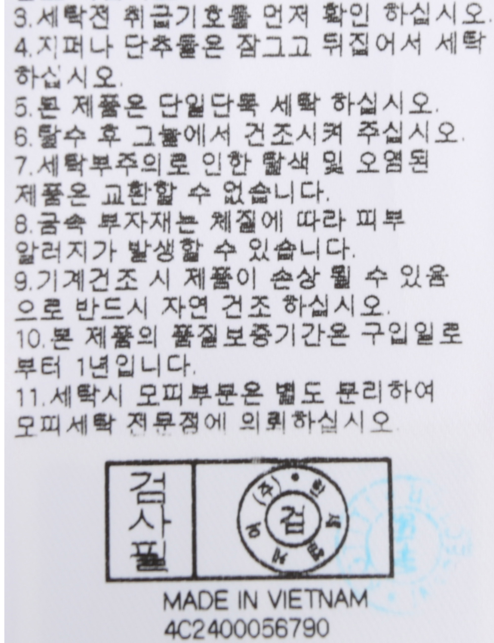 세탁방법 및 취급시 주의사항 본 제품은 손세탁 하십시오.(케어라벨참고)