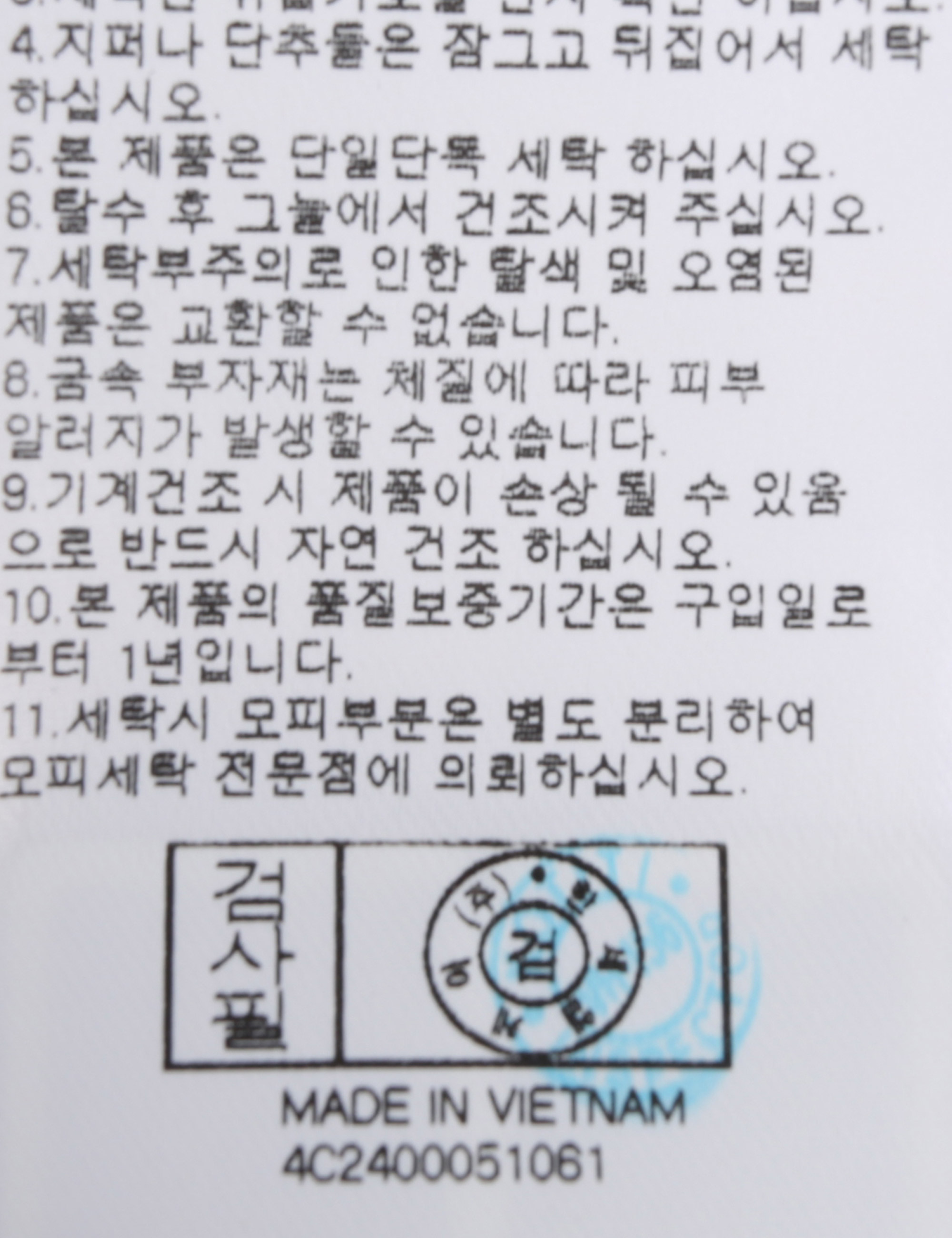 | 세탁방법 및 취급시 주의사항 | 본 제품은 손세탁 하십시오.(케어라벨참고) |