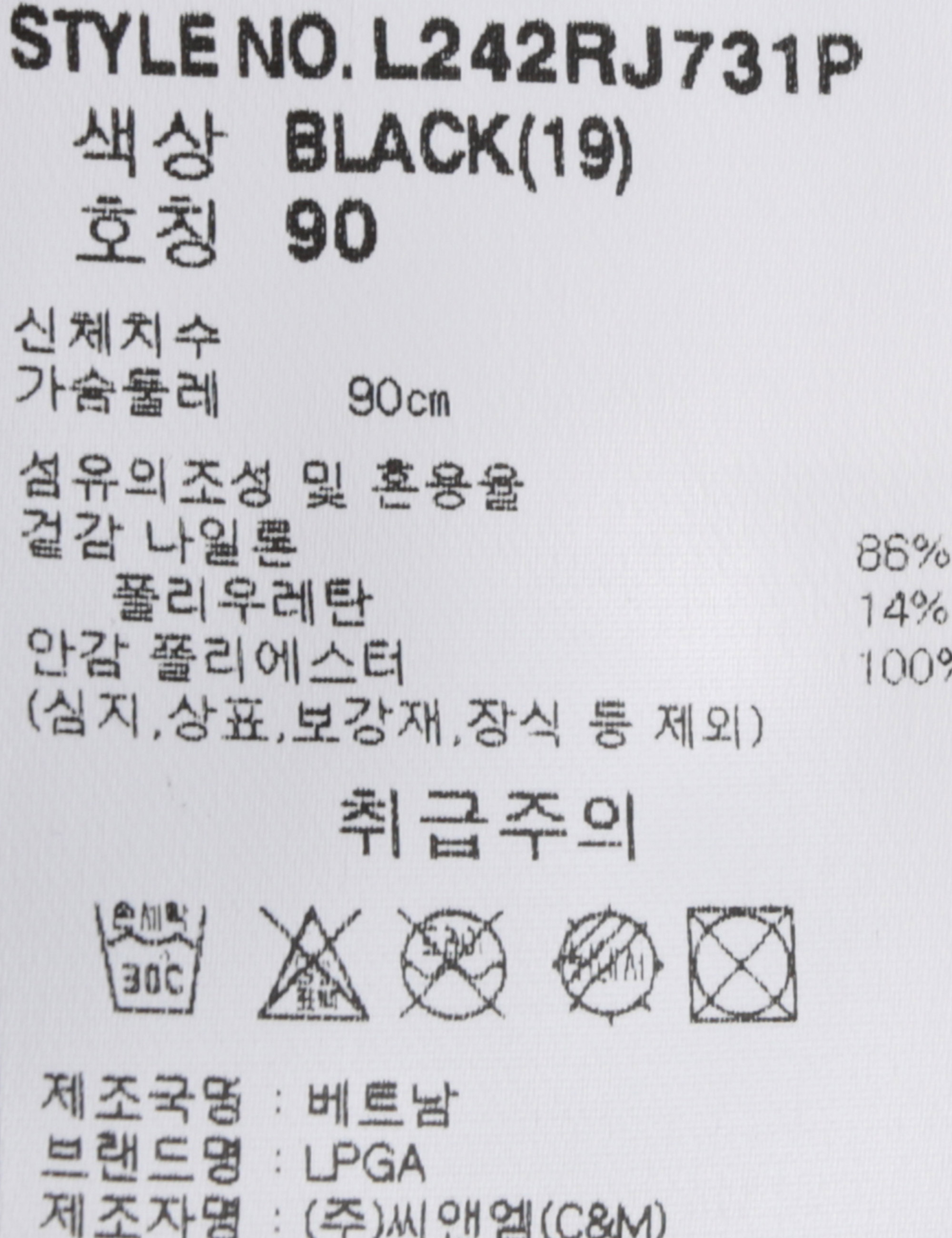 제품소재 [겉감]나일론86% 폴리우레탄14% [안감]폴리에스터100%