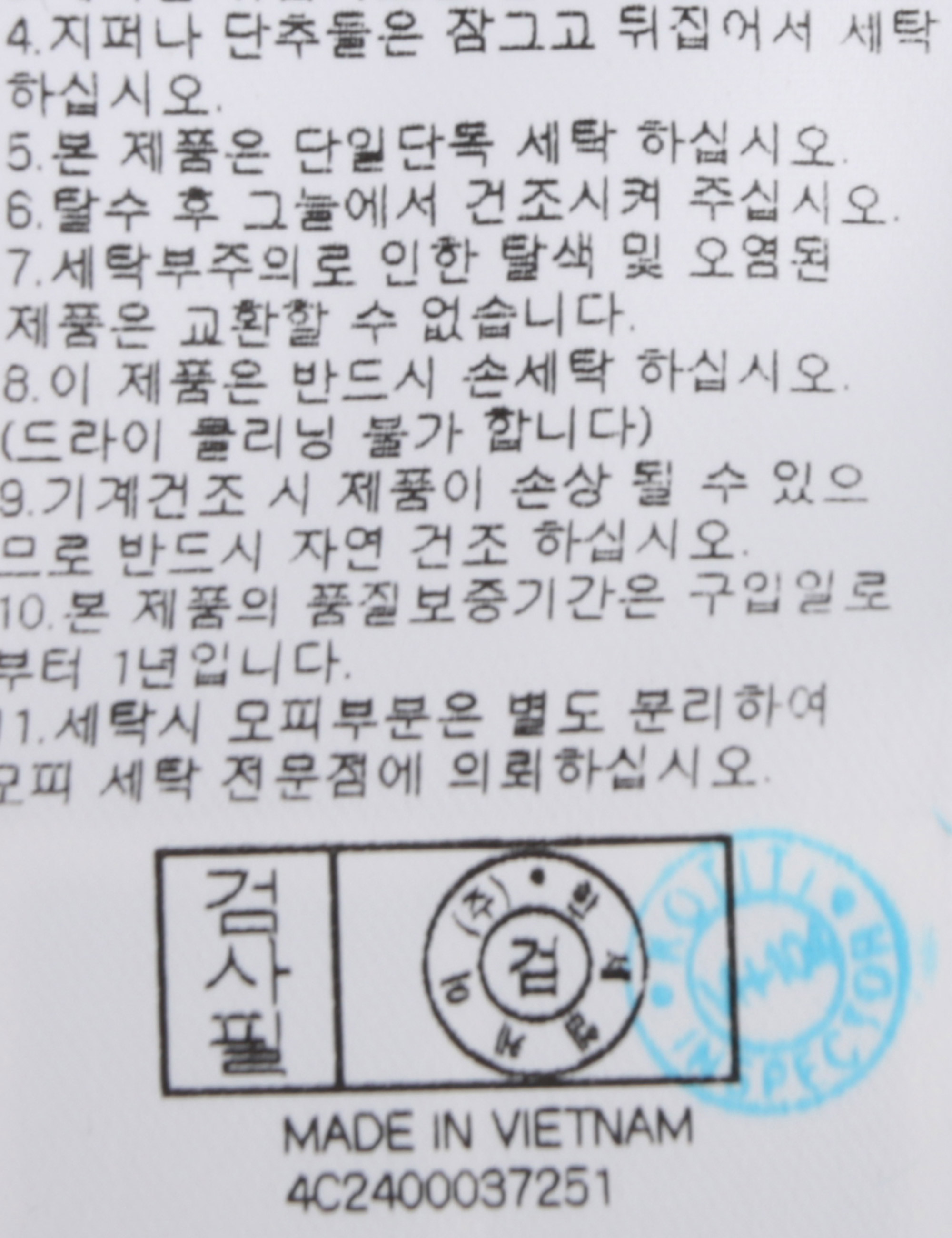 세탁방법 및 취급시 주의사항 본 제품은 손세탁 하십시오.(케어라벨참고)
