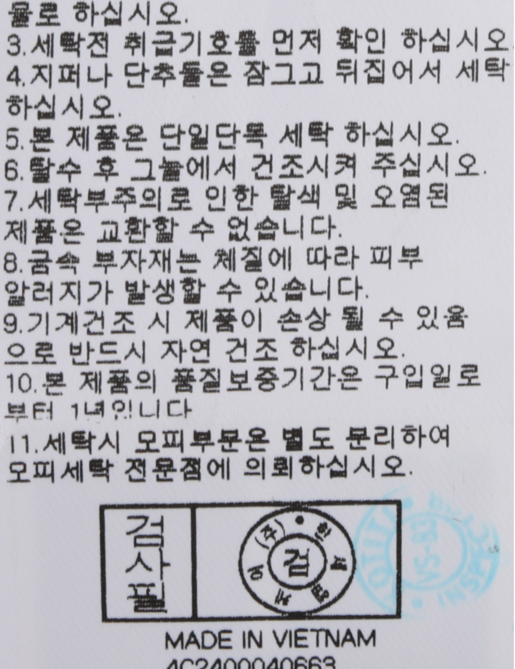 | 세탁방법 및 취급시 주의사항 | 본 제품은 손세탁 하십시오.(케어라벨참고) |