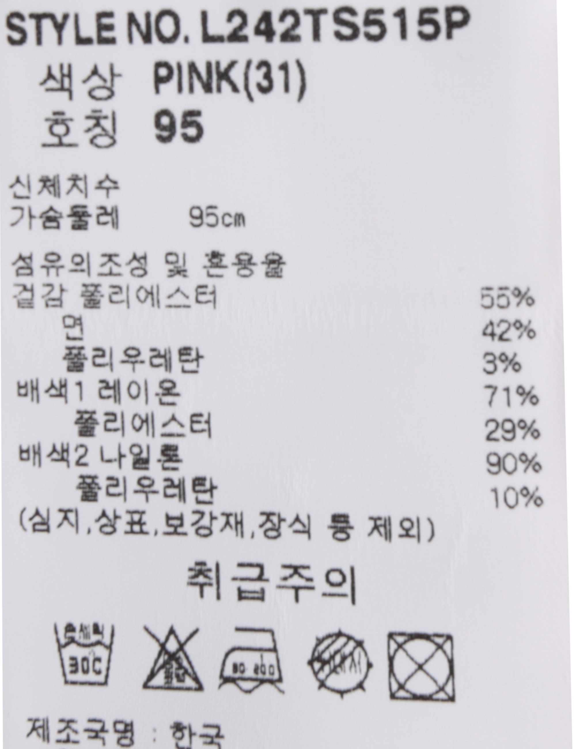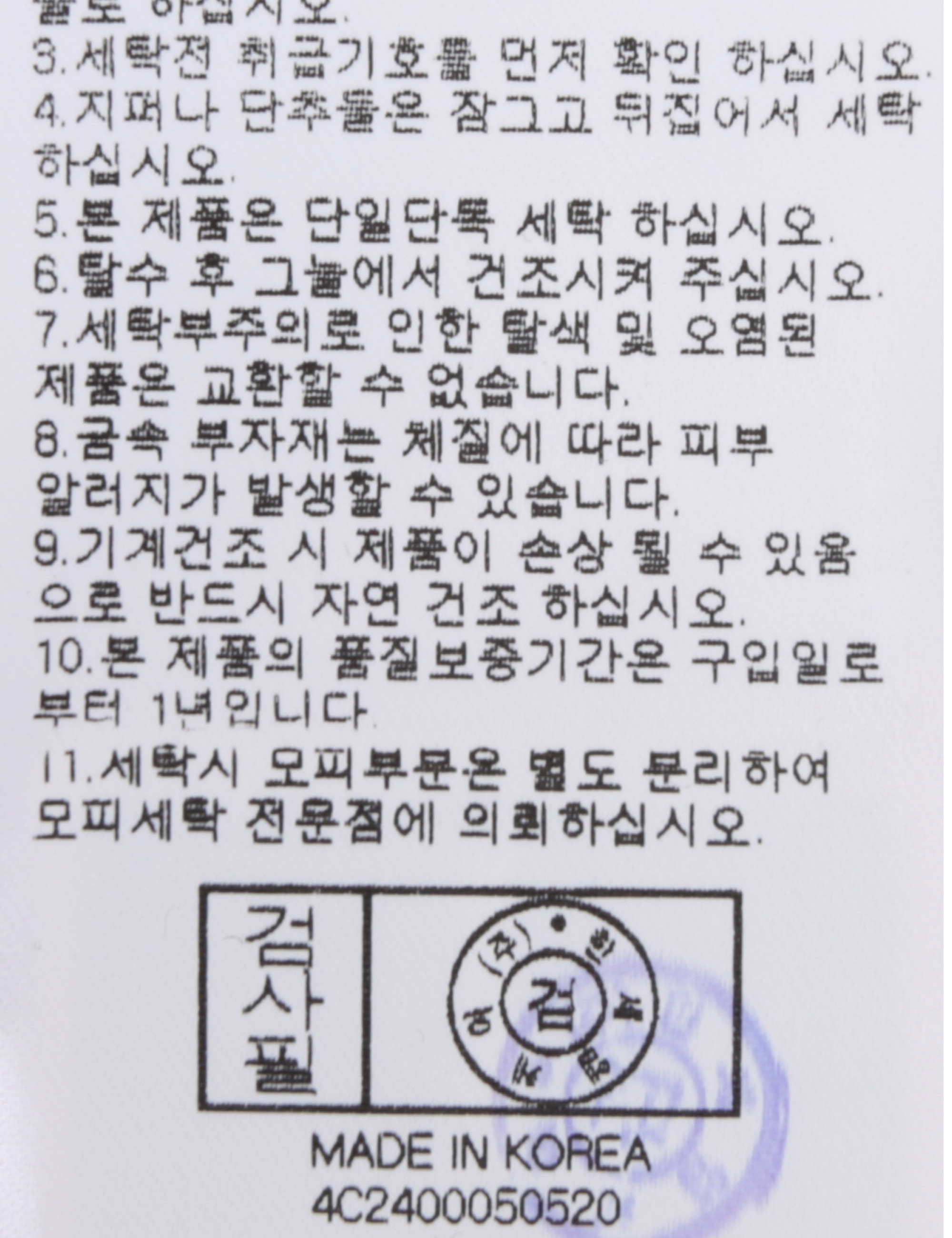 | 세탁방법 및 취급시 주의사항 | 본 제품은 손세탁 하십시오.(케어라벨참고) |