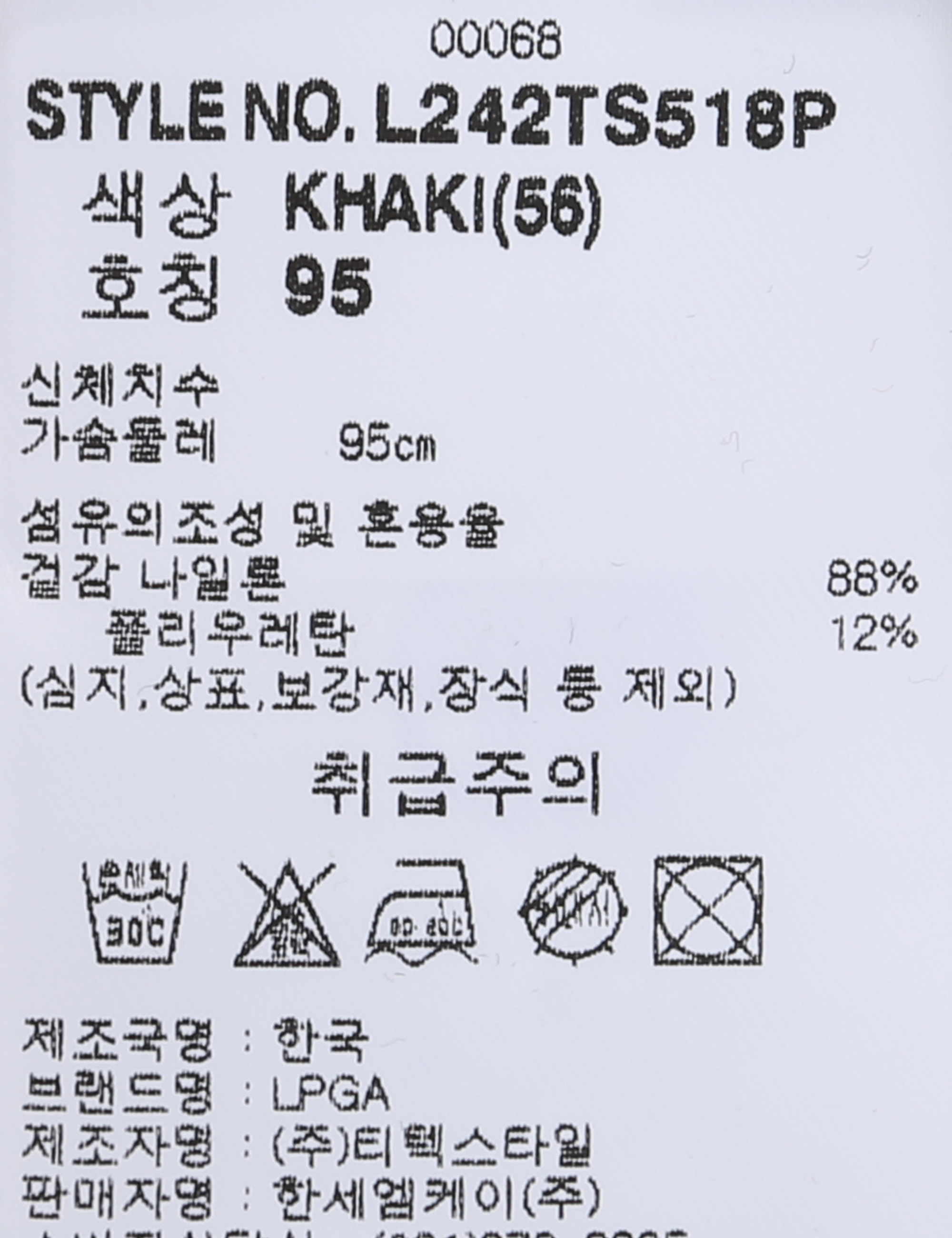 제품소재 [겉감]나일론88% 폴리우레탄12%