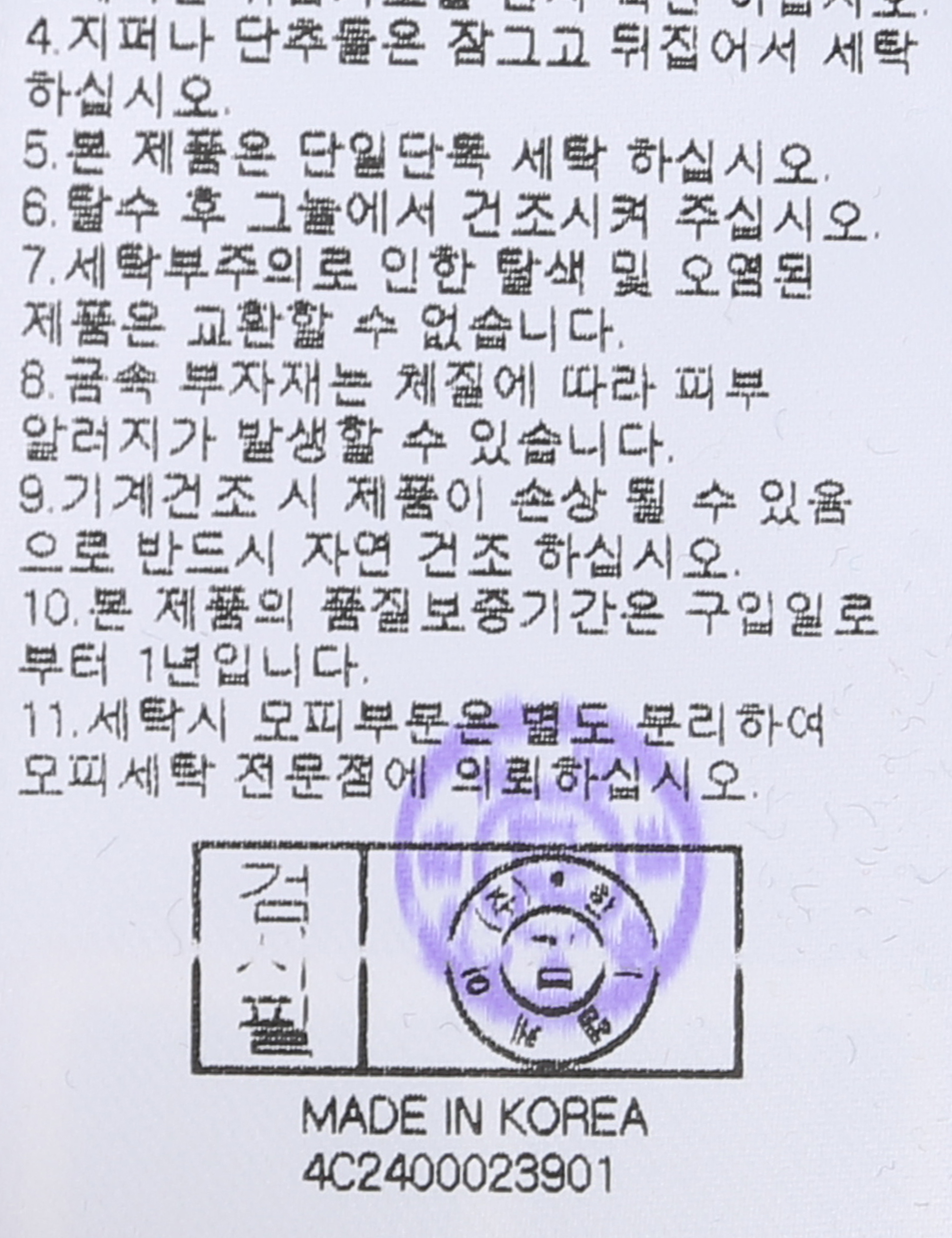 세탁방법 및 취급시 주의사항 본 제품은 손세탁 하십시오.(케어라벨참고)