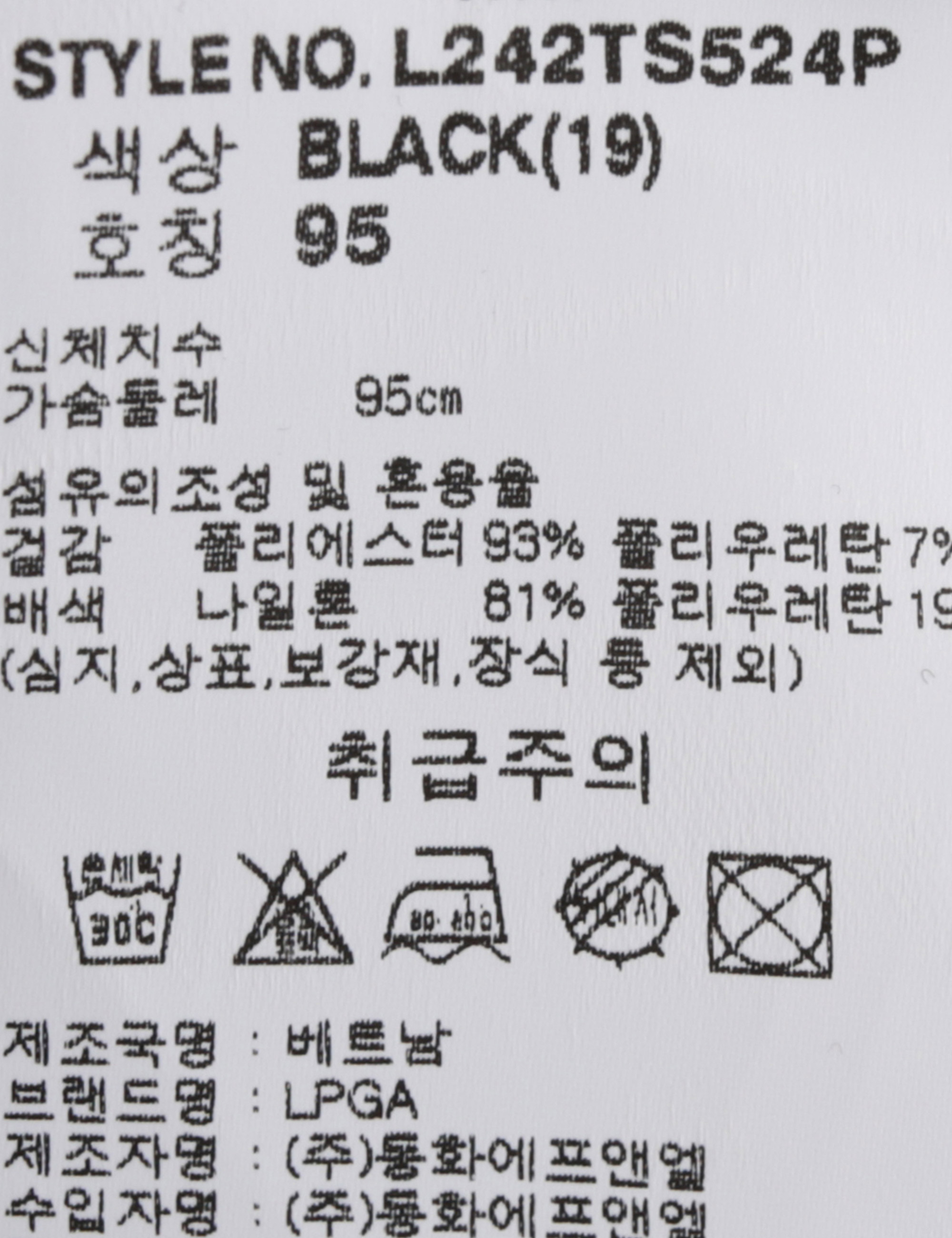 브랜드 홈 바로가기| 제품소재 | [겉감]폴리에스터93% 폴리우레탄7% [배색]나일론81% 폴리우레탄19% |