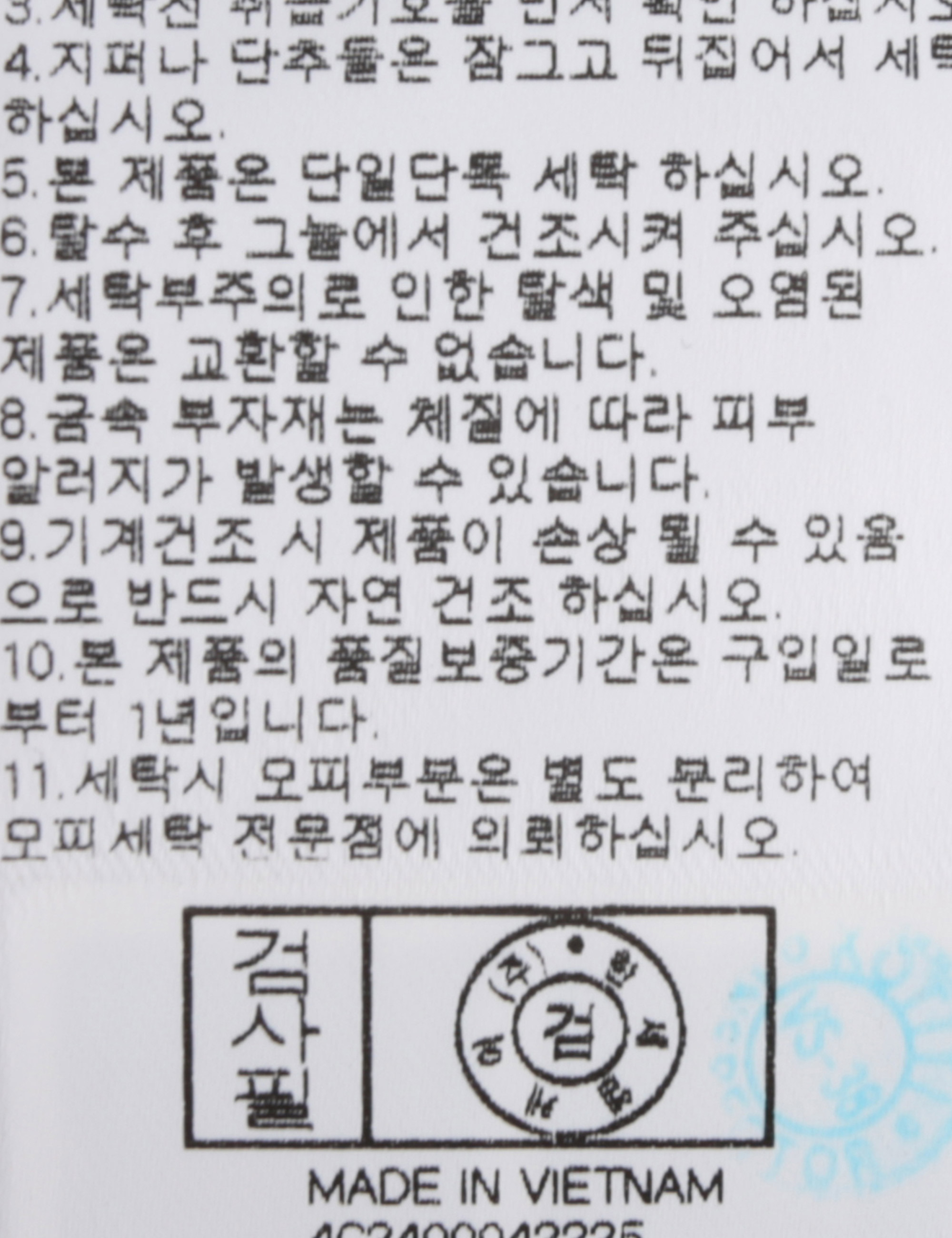 | 세탁방법 및 취급시 주의사항 | 본 제품은 손세탁 하십시오.(케어라벨참고) |