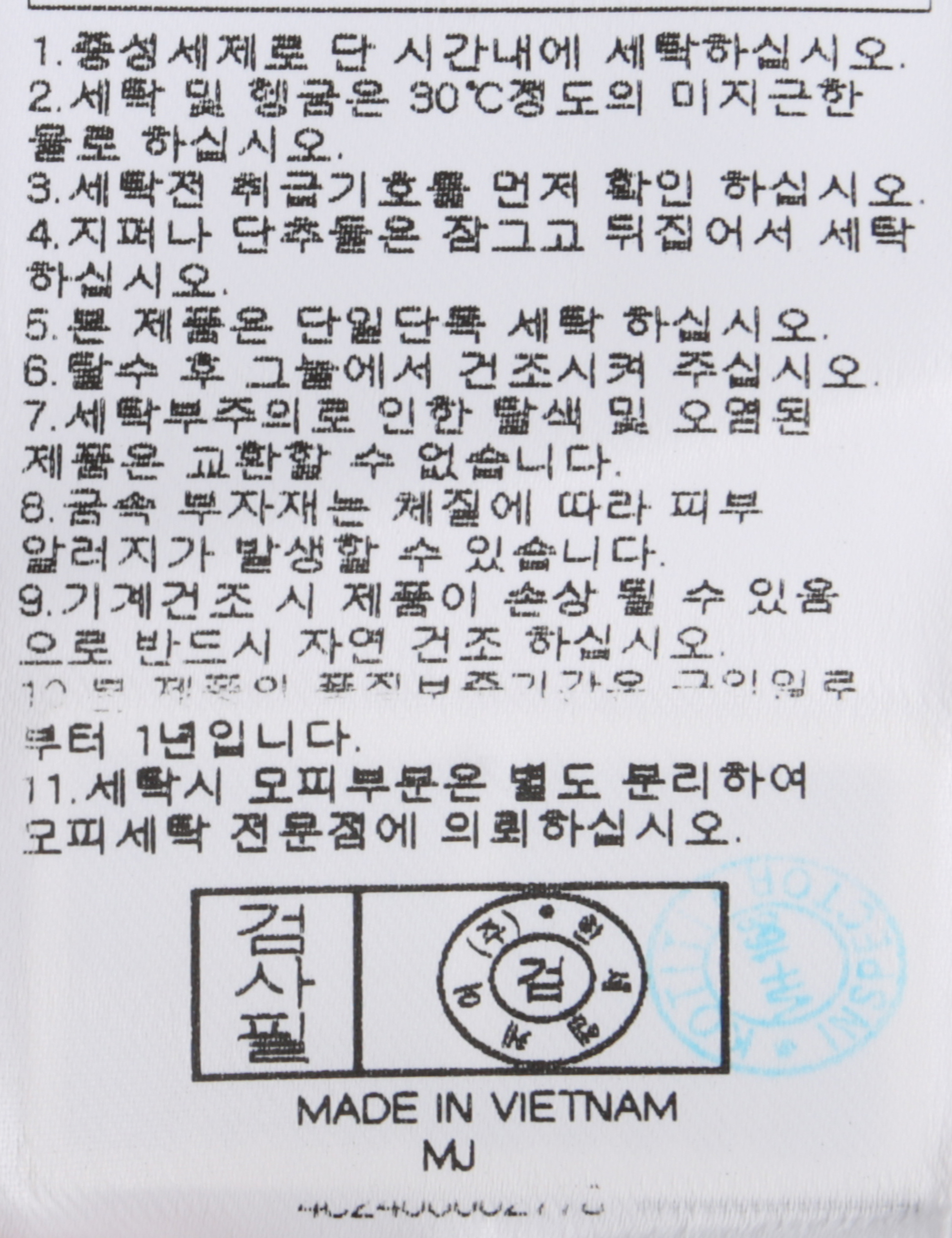 세탁방법 및 취급시 주의사항 본 제품은 손세탁 하십시오.(케어라벨참고)
