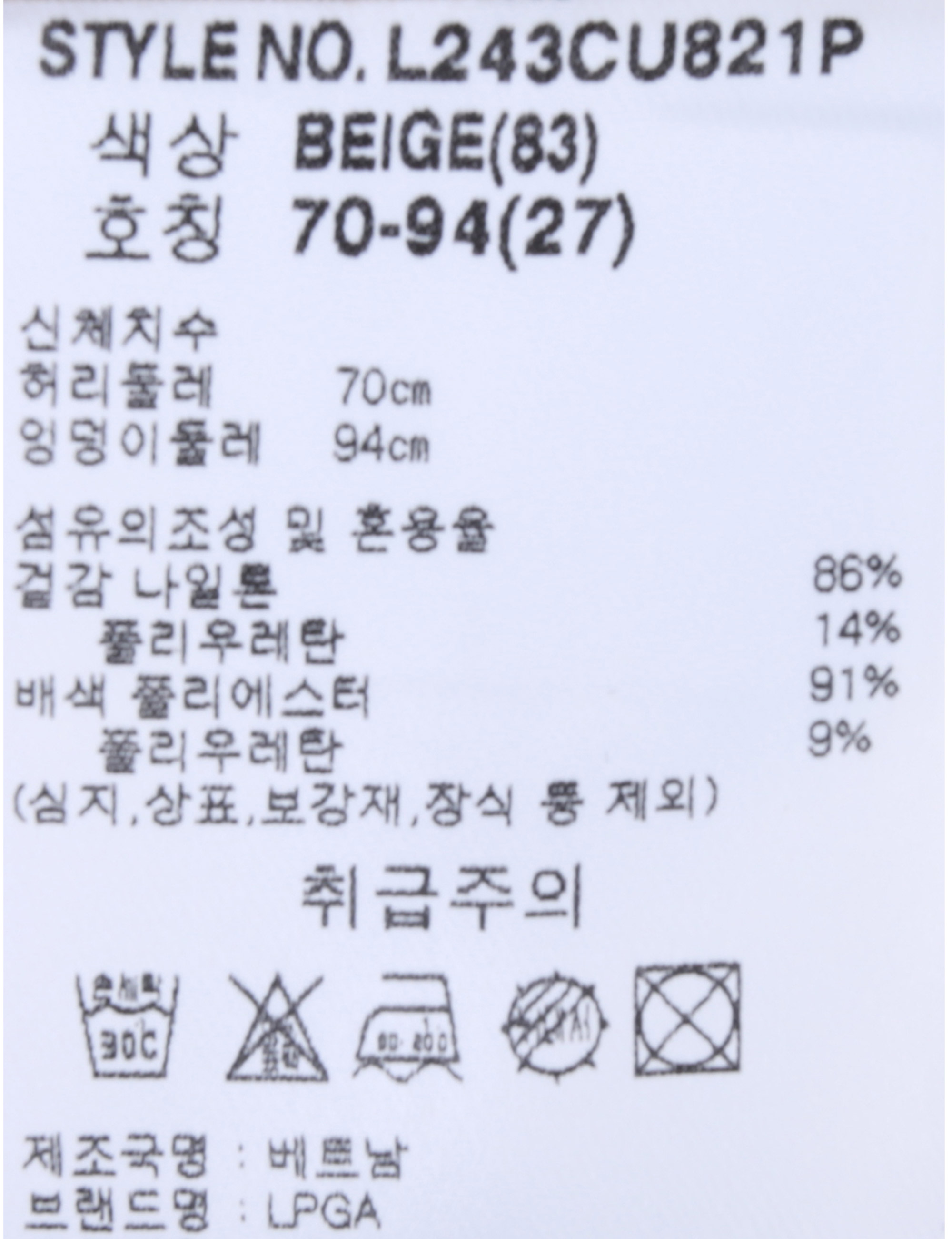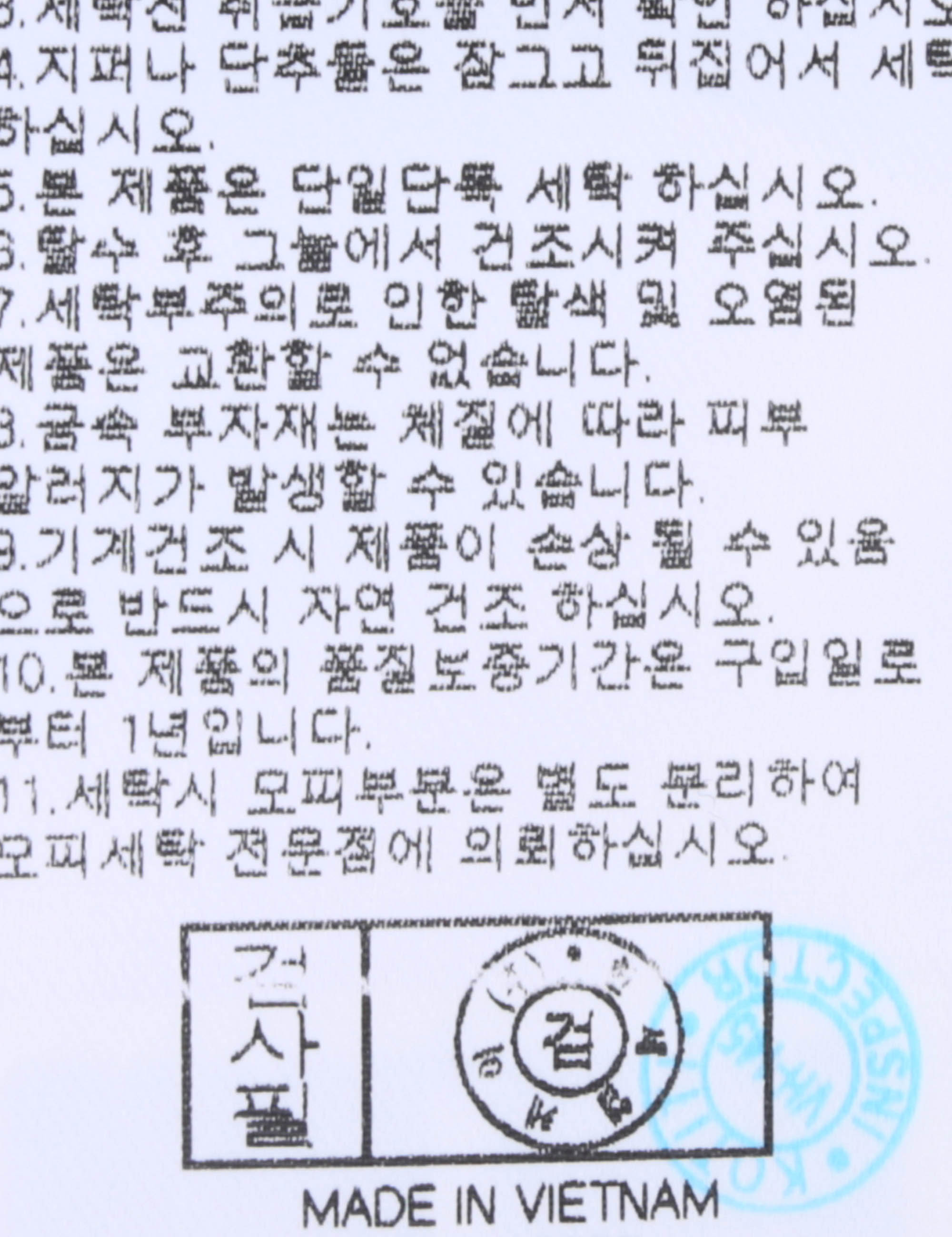| 세탁방법 및 취급시 주의사항 | 본 제품은 손세탁 하십시오.(케어라벨참고) |