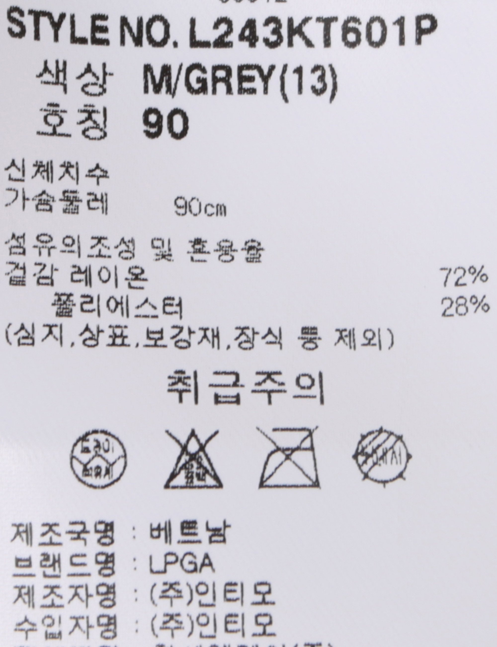 제품소재 [겉감]레이온72% 폴리에스터28%