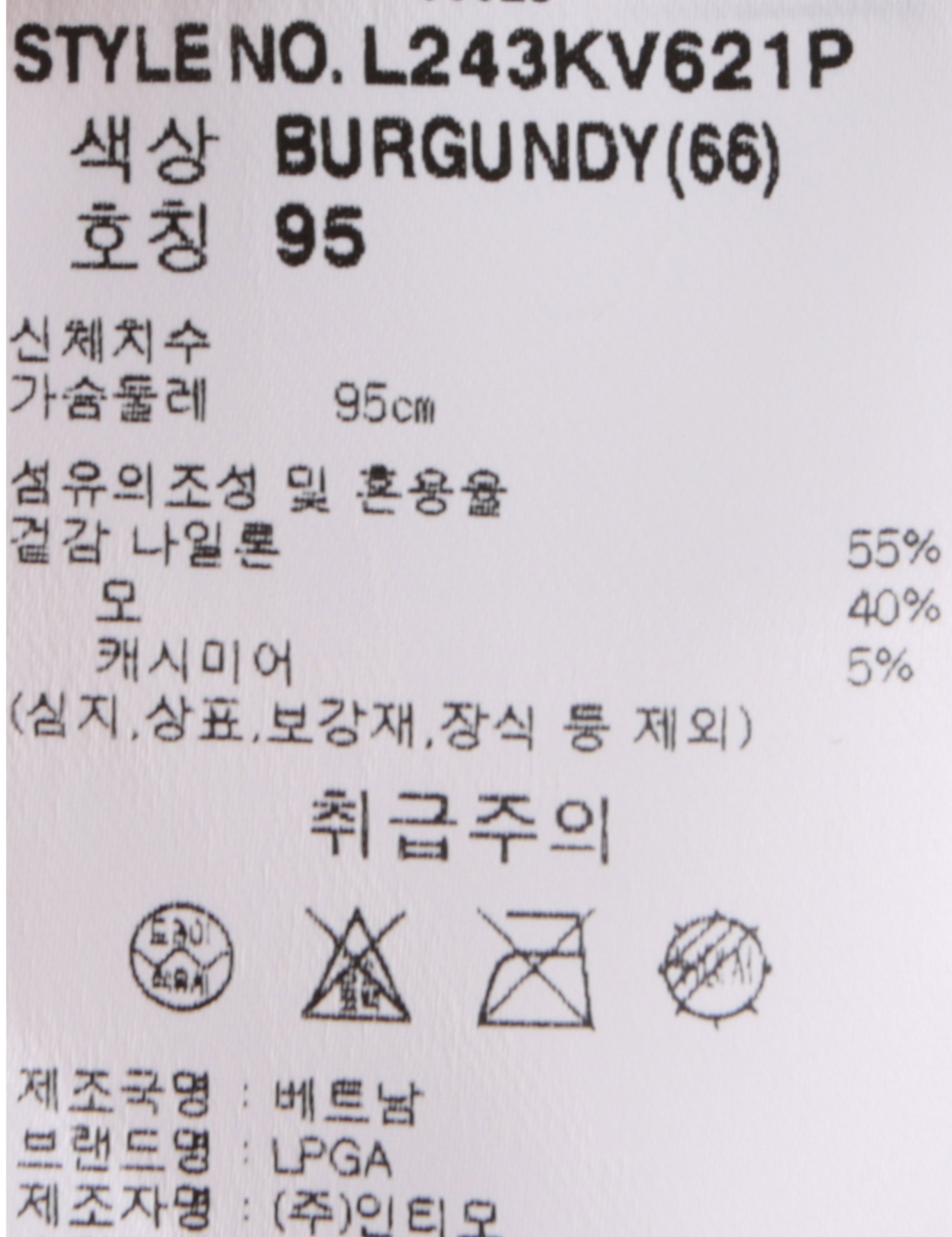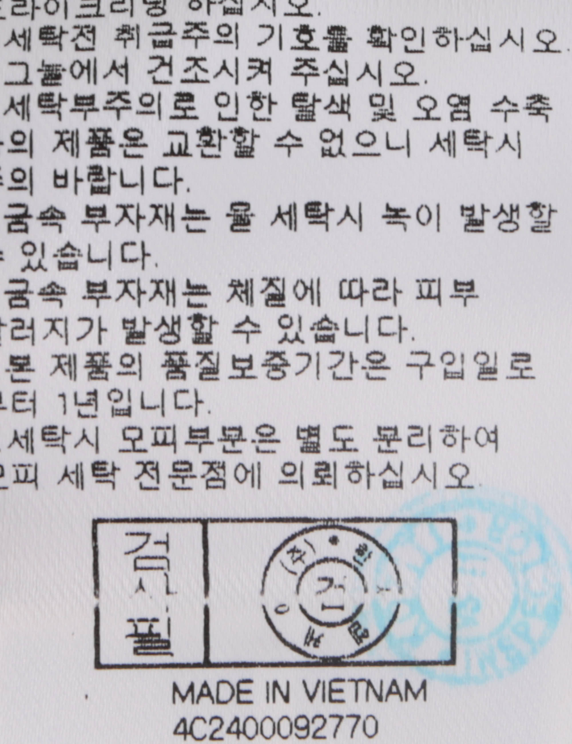 | 세탁방법 및 취급시 주의사항 | 본 제품은 반드시 드라이크리닝 하십시오.(세탁라벨참고) |