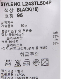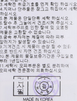 | 세탁방법 및 취급시 주의사항 | 본 제품은 손세탁 하십시오.(케어라벨참고) |